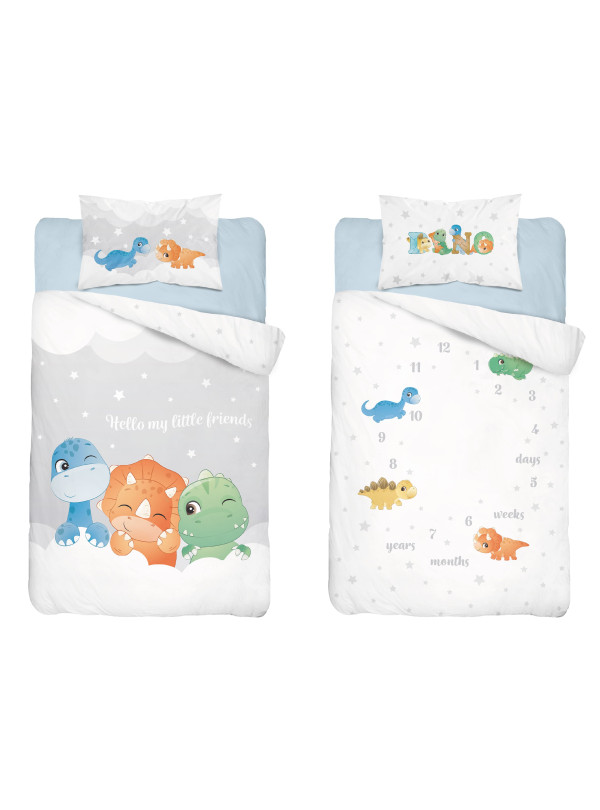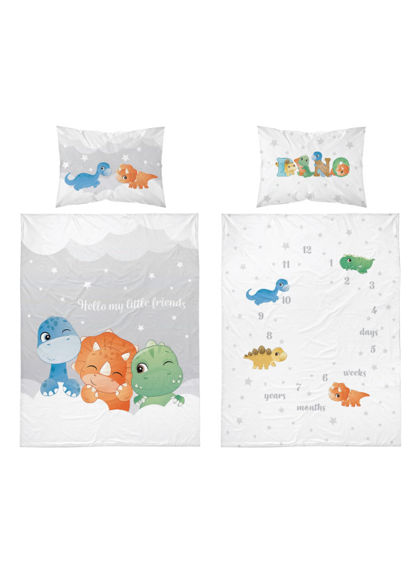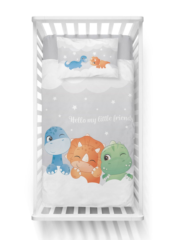 POŚCIEL DO ŁÓŻECZKA 90x120 KOLOROWE DINOZAURY - KOD:1074