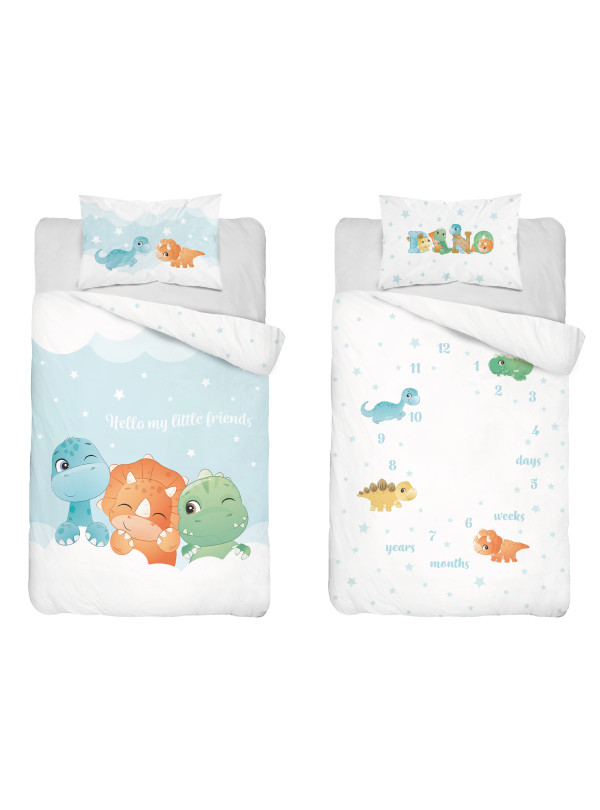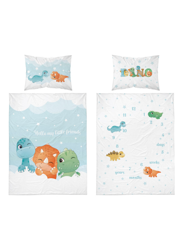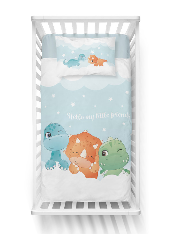 POŚCIEL DO ŁÓŻECZKA 100x135 KOLOROWE DINOZAURY - KOD:1075