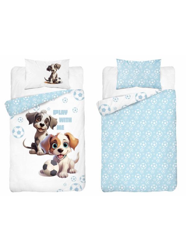 POŚCIEL DO ŁÓŻECZKA 100x135 NIEBIESKA PIŁKA NOŻNA PIESKI - KOD:1205