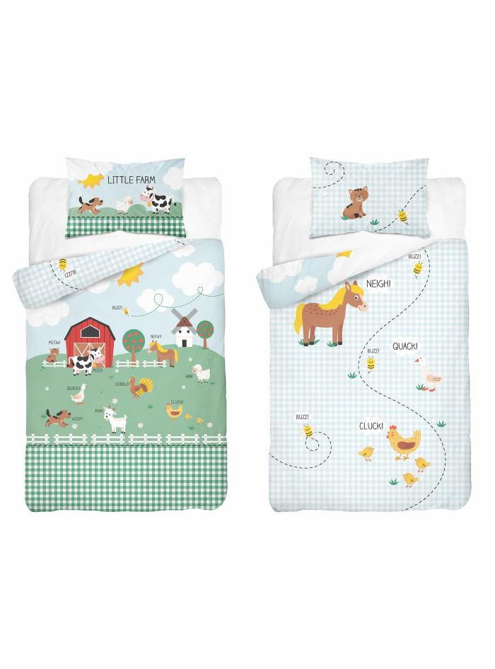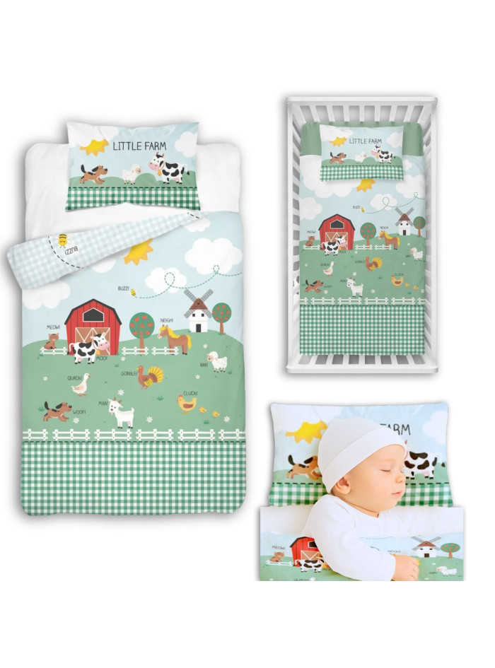 POŚCIEL DO ŁÓŻECZKA 90x120 CZERWONA MAŁA FARMA 4991_A
