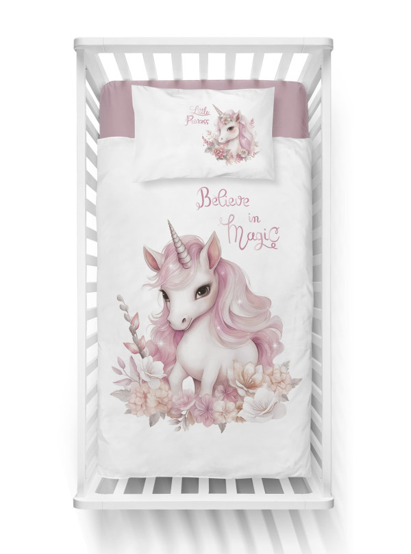POŚCIEL DO ŁÓŻECZKA 90x120 RÓŻOWY JEDNOROŻEC KUCYK