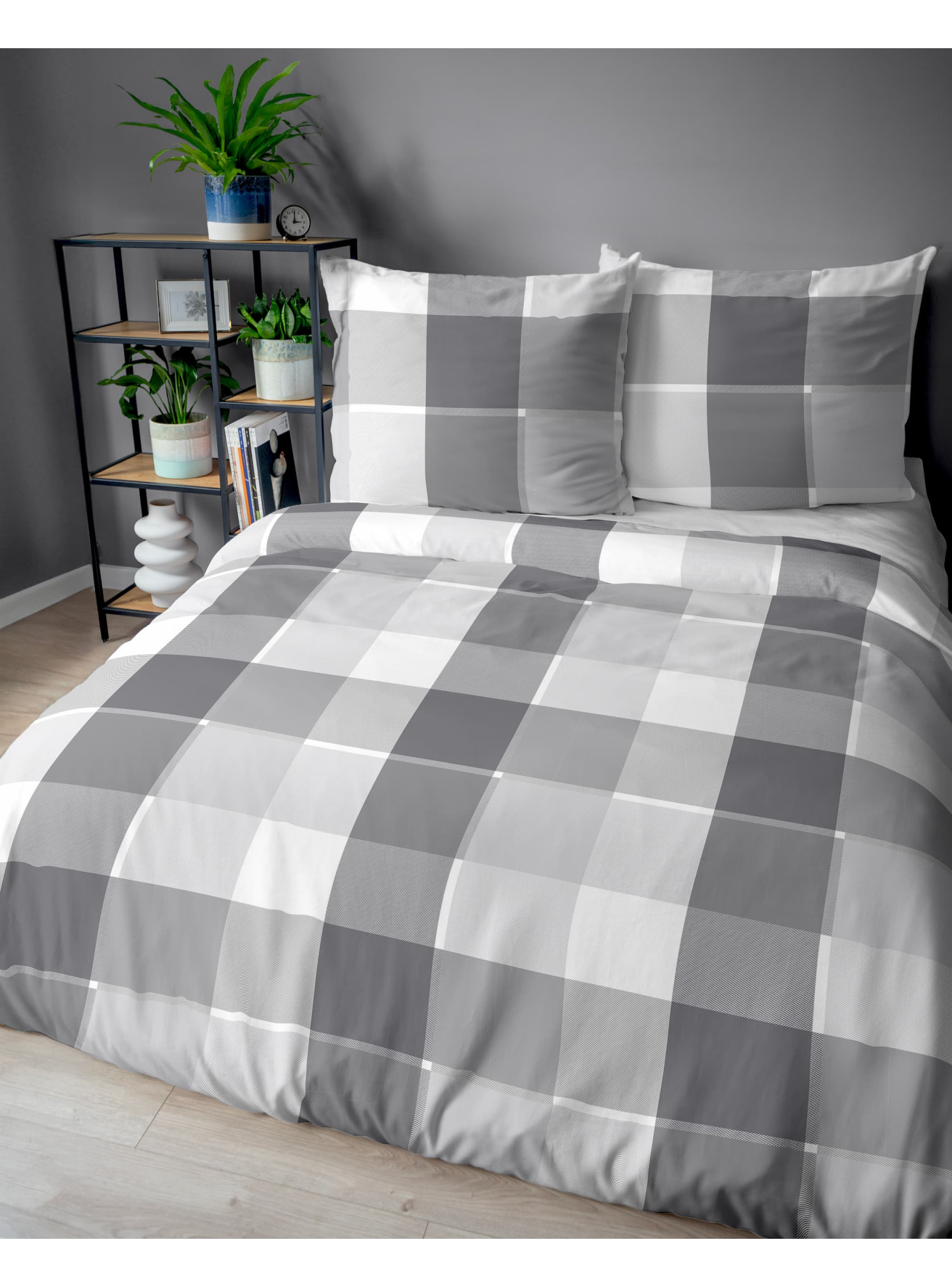POŚCIEL BAWEŁNIANA 200x220 SZARA W KRATĘ 5109_B