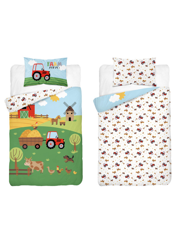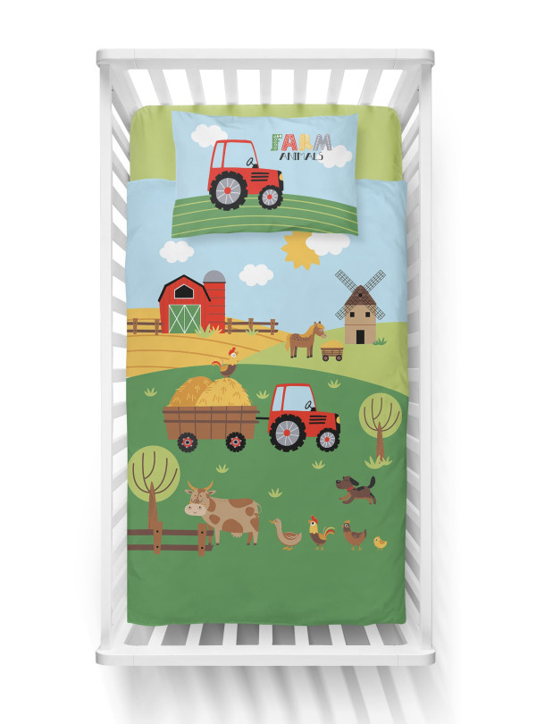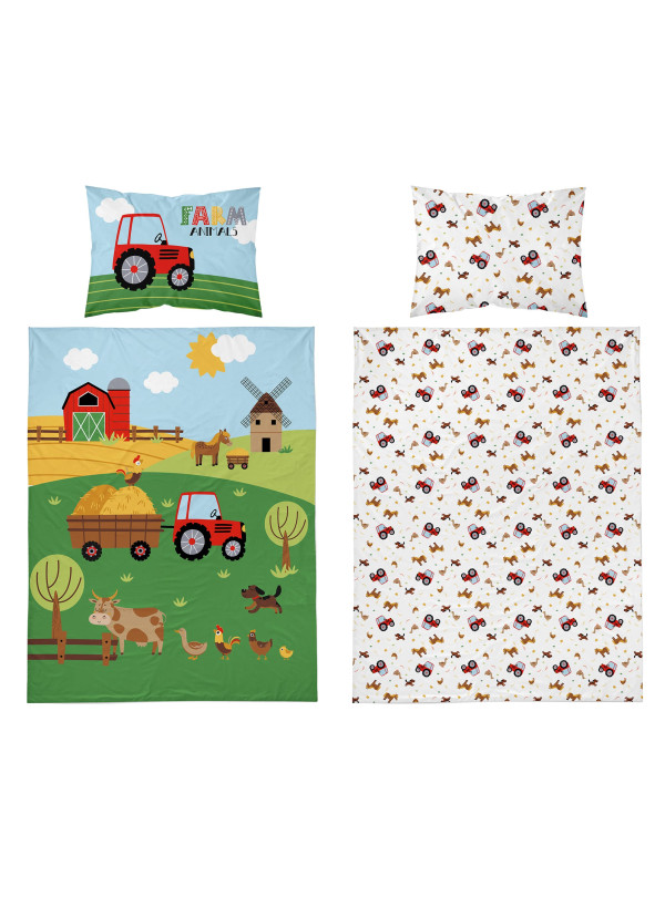 POŚCIEL DO ŁÓŻECZKA 100x135 CZERWONA MAŁA FARMA TRAKTOR 5003_A - KOD:1480
