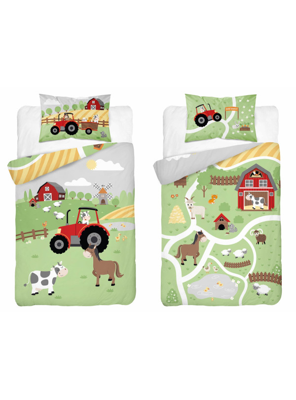 POŚCIEL DO ŁÓŻECZKA 100x135 BAMBUSOWA FARMA TRAKTOR 4791_A - KOD:1489