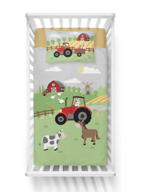 POŚCIEL DO ŁÓŻECZKA 100x135 BAMBUSOWA FARMA TRAKTOR 4791_A