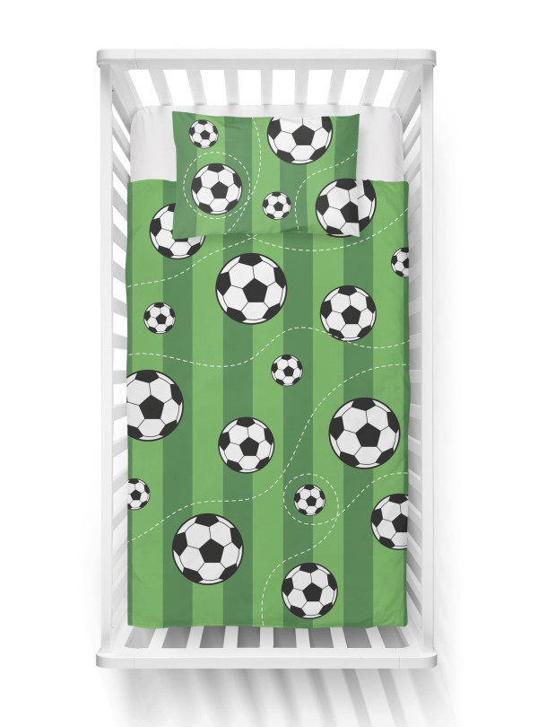 KOMPLET POŚCIELI DO ŁÓŻECZKA DZIECIĘCEGO 100X135 CM ZIELONA PIŁKA NOŻNA 5138_A