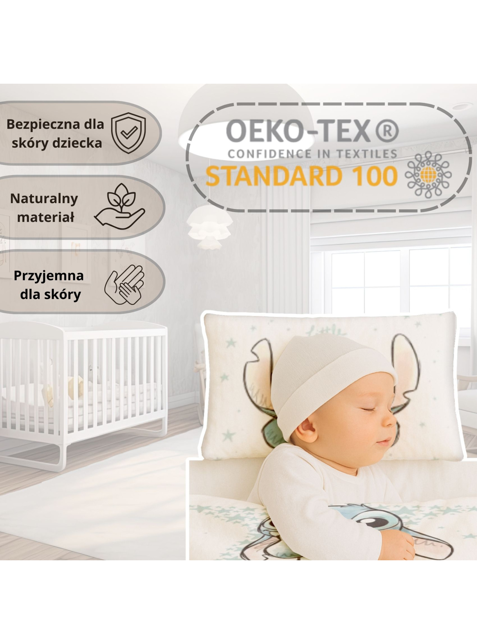 Oznacza, że materiały z których jest wykonana pościel są przebadane i nie zawierają szkodliwych dla zdrowia substancji.