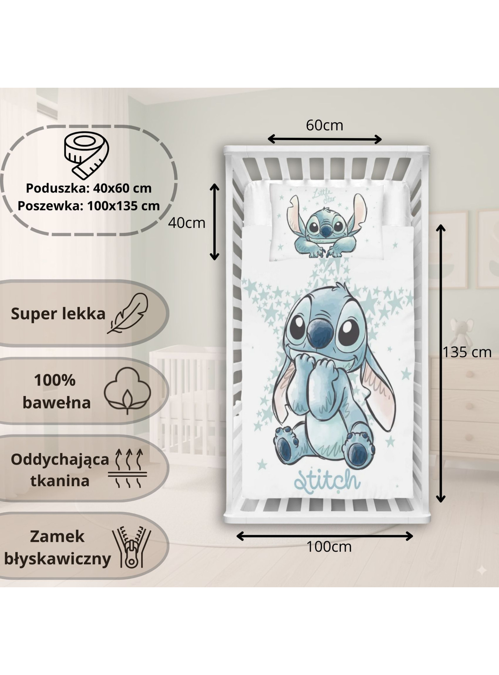 POŚCIEL DO ŁÓŻECZKA 100x135 LILO I STITCH SŁODZIAK