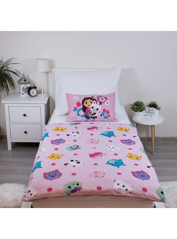 KOMPLET POŚCIELI DO ŁÓŻECZKA DZIECIĘCEGO 100X135 CM KOCI DOMEK GABI RÓŻOWA HEY GABBY