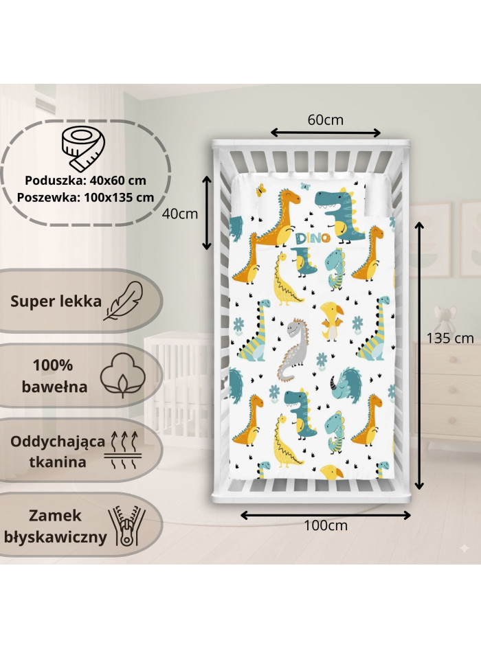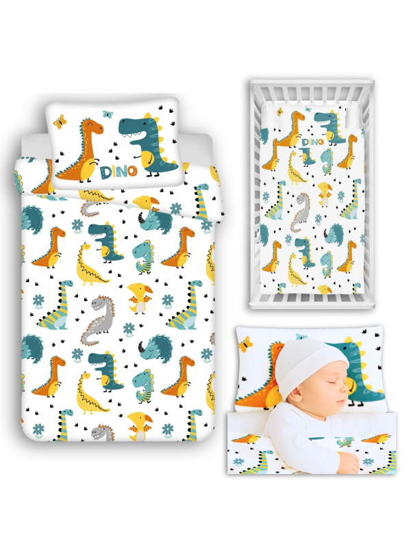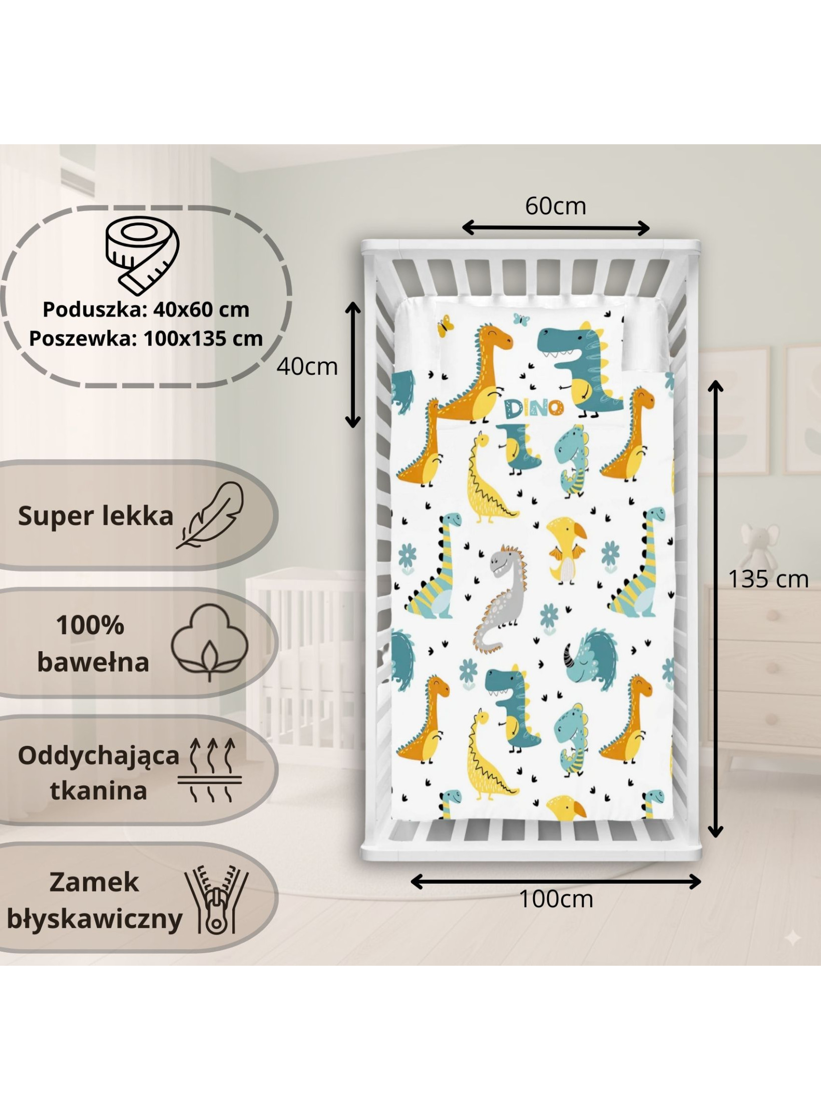 KOMPLET POŚCIELI DO ŁÓŻECZKA DZIECIĘCEGO 100X135 CM KOLOROWE DINOZAURY DINO_03