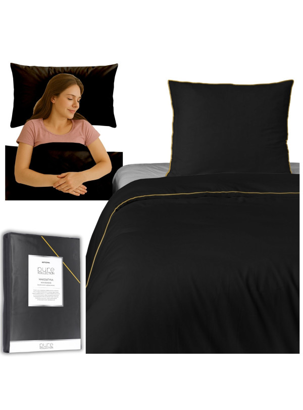 KOMPLET POŚCIELI 140x200 MAKOSATYNA PURE CZARNA