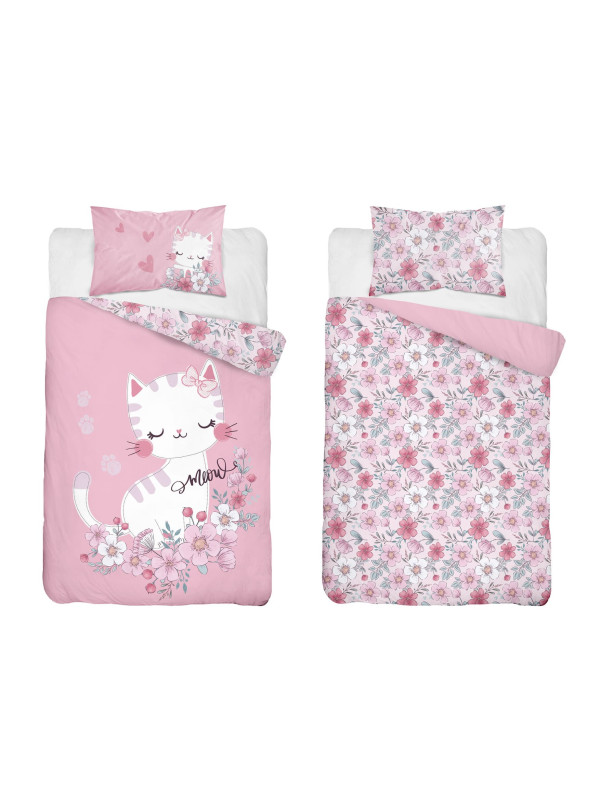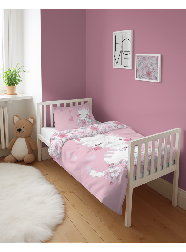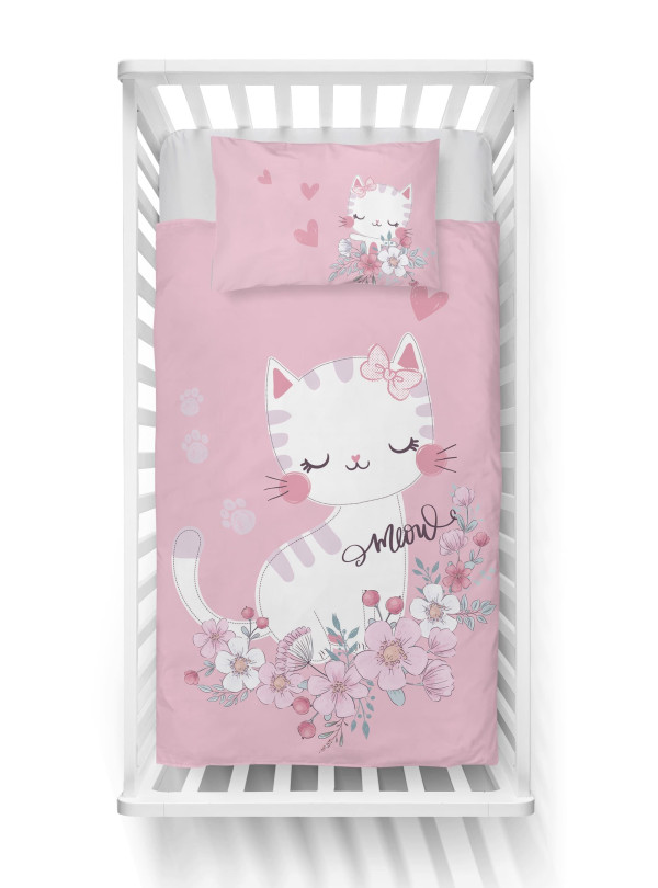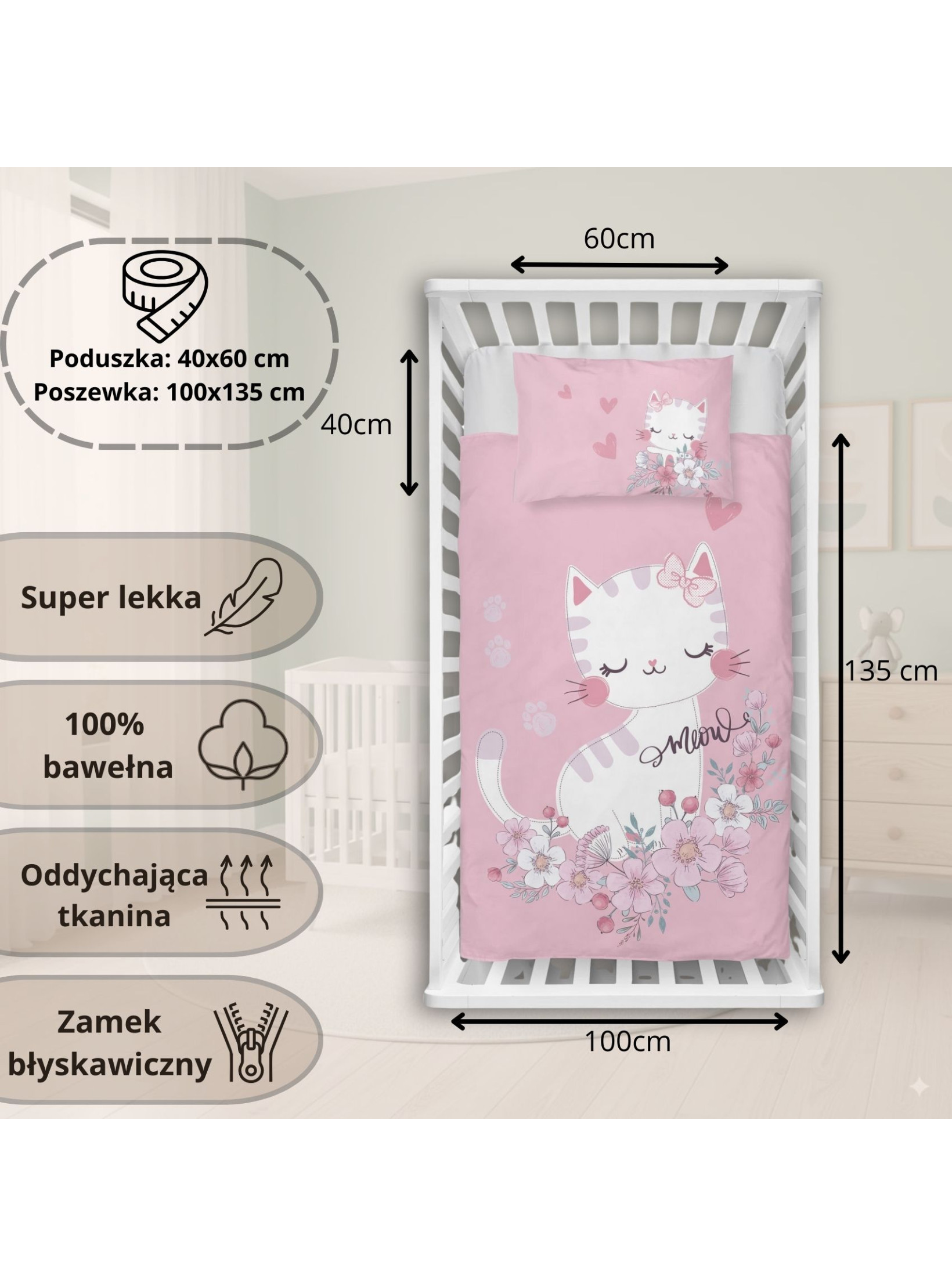 POŚCIEL DO ŁÓŻECZKA 100x135 RÓŻOWA KOTEK 5136_A