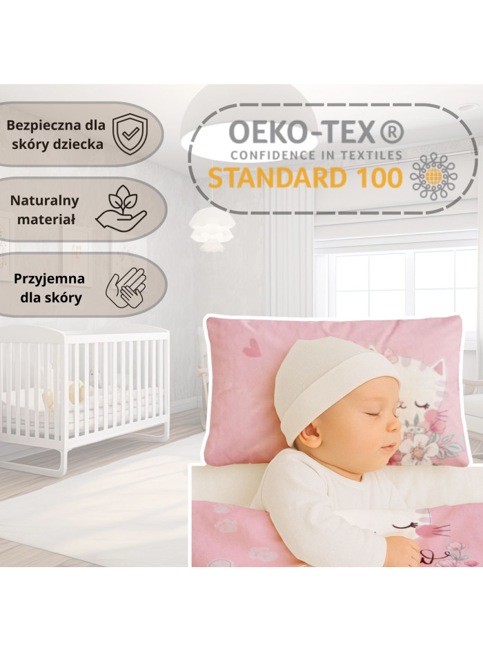 POŚCIEL DO ŁÓŻECZKA 100x135 RÓŻOWA KOTEK 5136_A - KOD:2052