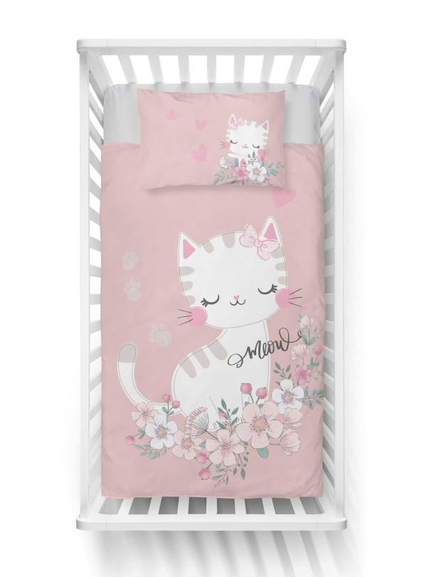 POŚCIEL DO ŁÓŻECZKA 100x135 JASNO RÓŻOWA KOTEK 5136_B