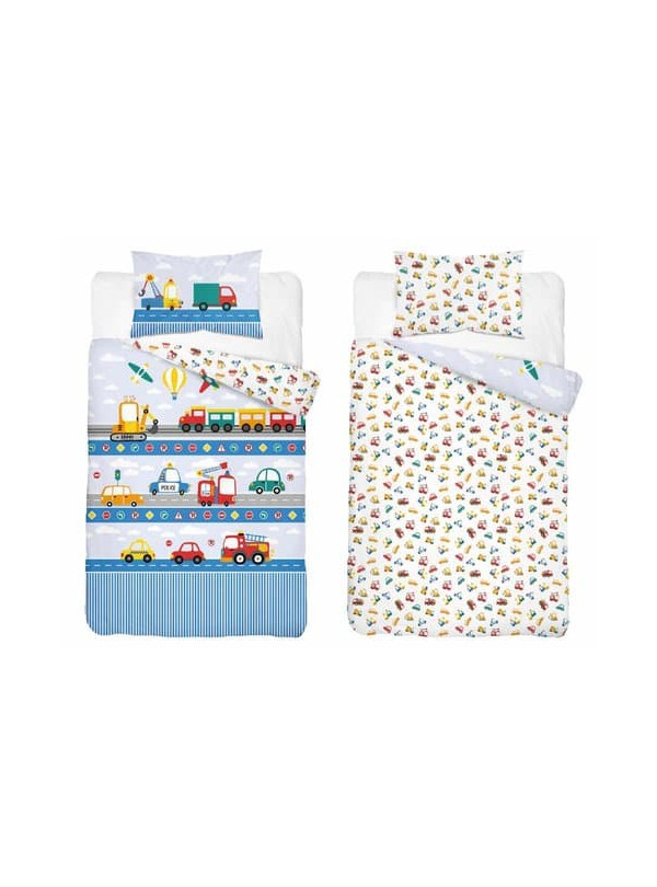 POŚCIEL DO ŁÓŻECZKA 100x135 NIEBIESKA AUTA 5139_A - KOD:2056