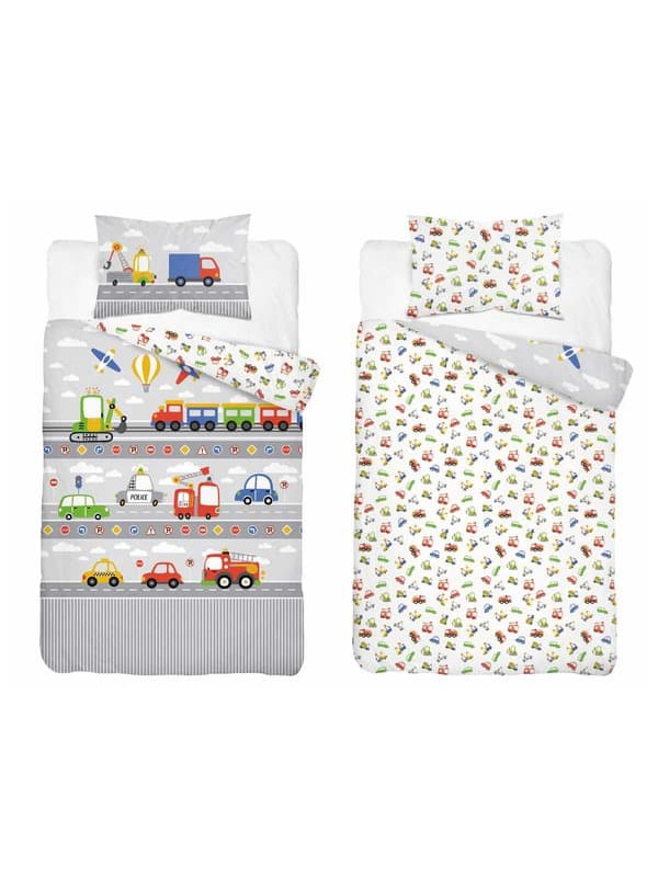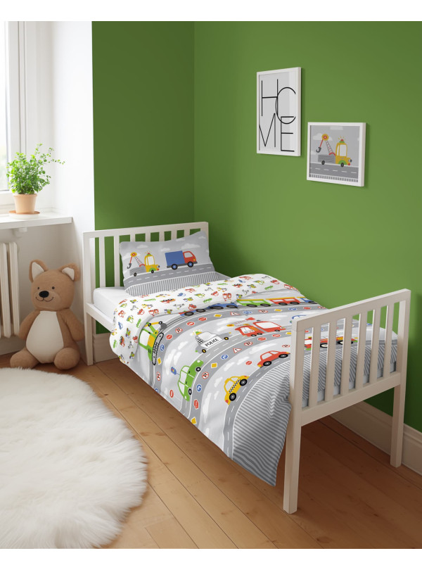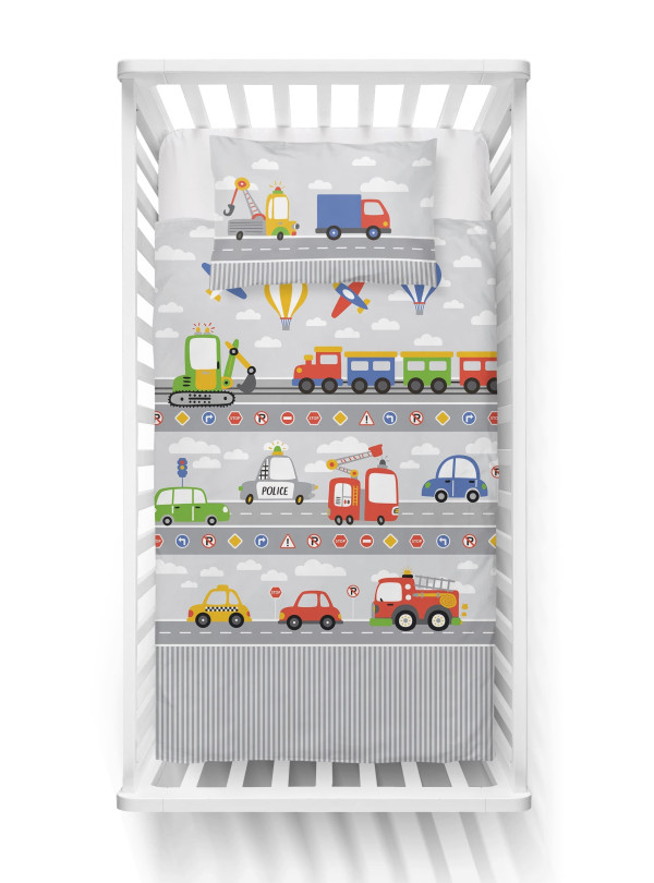 POŚCIEL DO ŁÓŻECZKA 100x135 SZARA AUTA 5139_B - KOD:2057