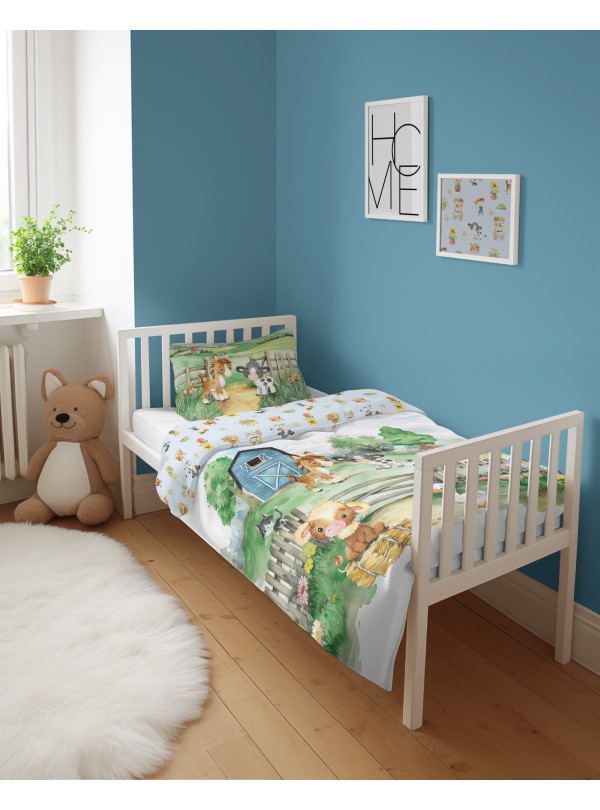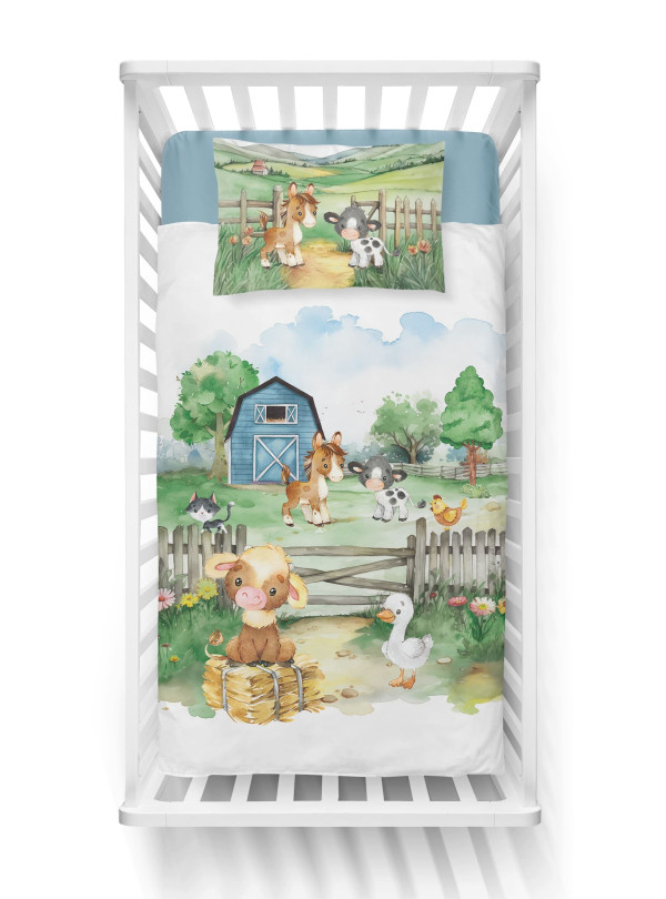 KOMPLET POŚCIELI DO ŁÓŻECZKA DZIECIĘCEGO 100X135 CM WIEŚ FARMA NIEBIESKA 5140_B
