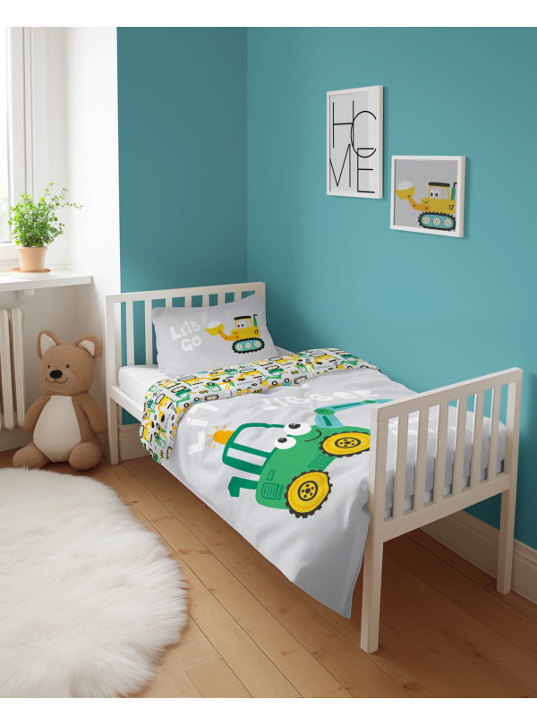 POŚCIEL DO ŁÓŻECZKA 90x120 ZIELONA KOPARKA 3956_A - KOD:2066