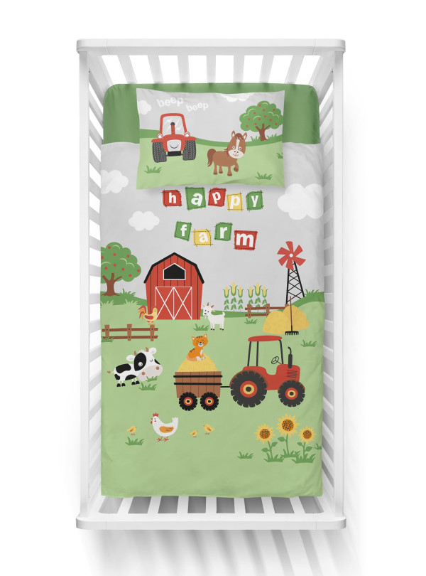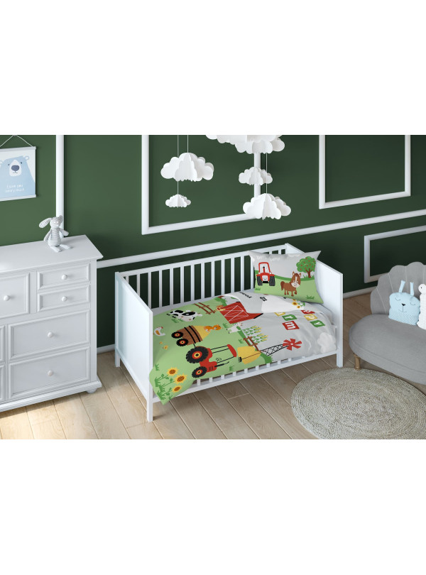 POŚCIEL DO ŁÓŻECZKA 90x120 FARMA CZERWONA TRAKTOR 4278_B - KOD:2069