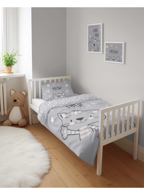 POŚCIEL DO ŁÓŻECZKA 90x120 KOTEK SZARY 4992_B - KOD:2070