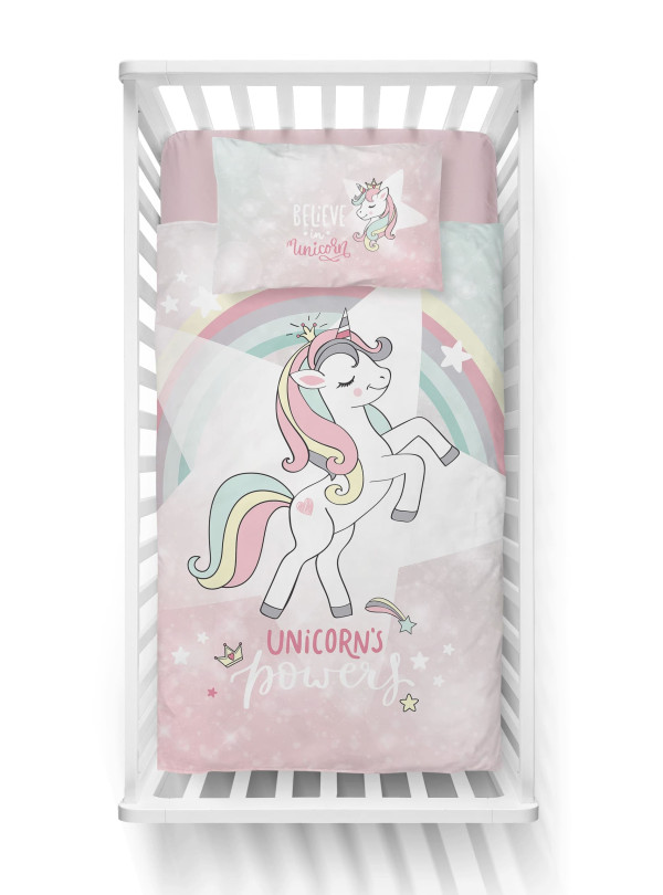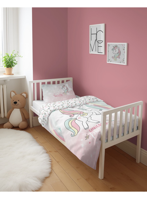 POŚCIEL DO ŁÓŻECZKA 90x120 JEDNOROŻEC TĘCZA 5133_B - KOD:2074