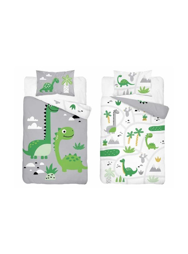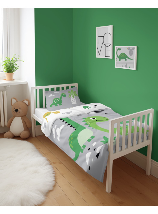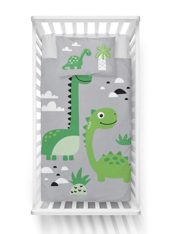 POŚCIEL DO ŁÓŻECZKA 90x120 SZARA DINOZAURY 5135_B - KOD:2078
