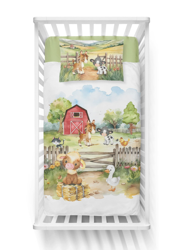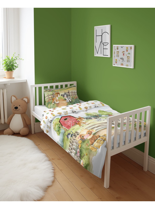 KOMPLET POŚCIELI DO ŁÓŻECZKA DZIECIĘCEGO 90x120 CM WIEŚ FARMA BIAŁA 5140_A