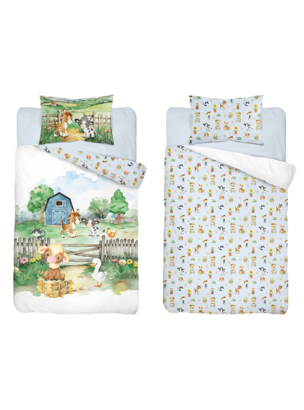 POŚCIEL DO ŁÓŻECZKA 90x120 WIEŚ FARMA NIEBIESKA 5140_B - KOD:2086