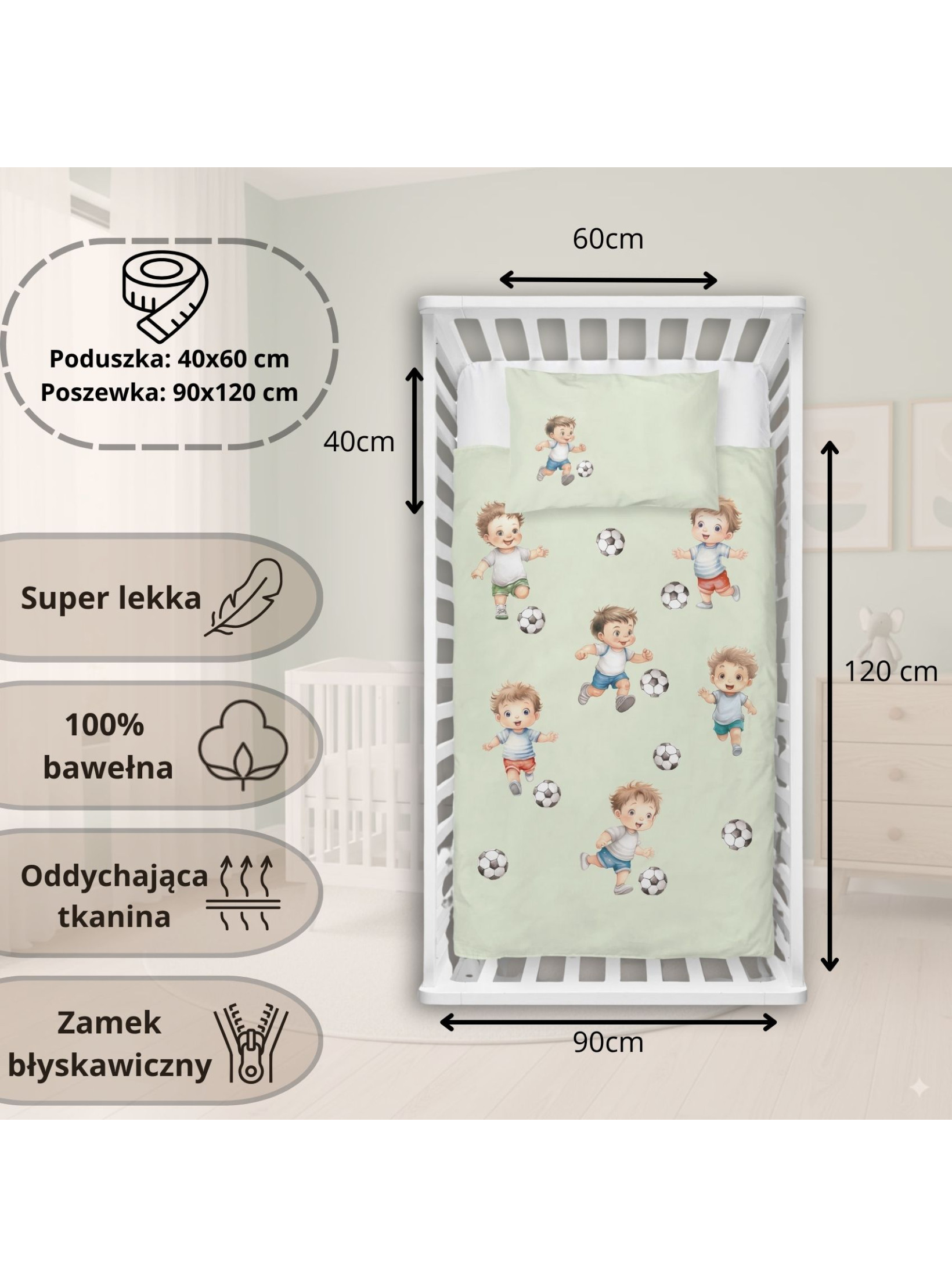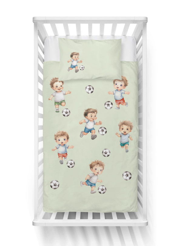 KOMPLET POŚCIELI DO ŁÓŻECZKA DZIECIĘCEGO 90x120 CM ZIELONA PIŁKA NOŻNA 5142_B