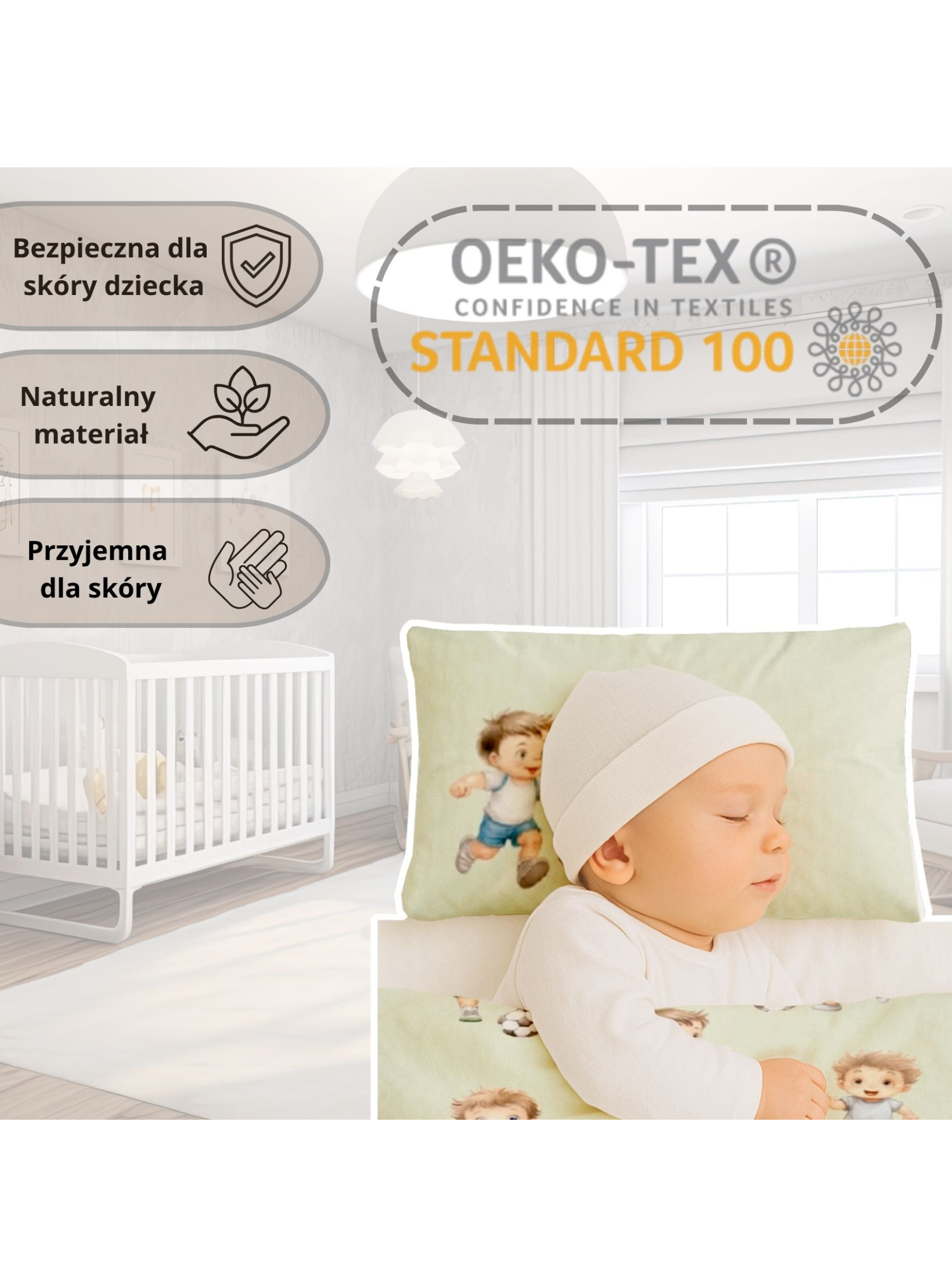 Każdy rodzic pragnie, aby jego maluszek spał spokojnie i bezpiecznie. Nasza pościel dziecięca 90x120 została uszyta z 100% bawełny, która jest miękka, oddychająca i w pełni naturalna. Certyfikat Oeko-Tex Standard 100 potwierdza, że tkanina jest wolna od szkodliwych substancji, dlatego to idealna pościel dla dziecka w jego pierwszych latach życia.