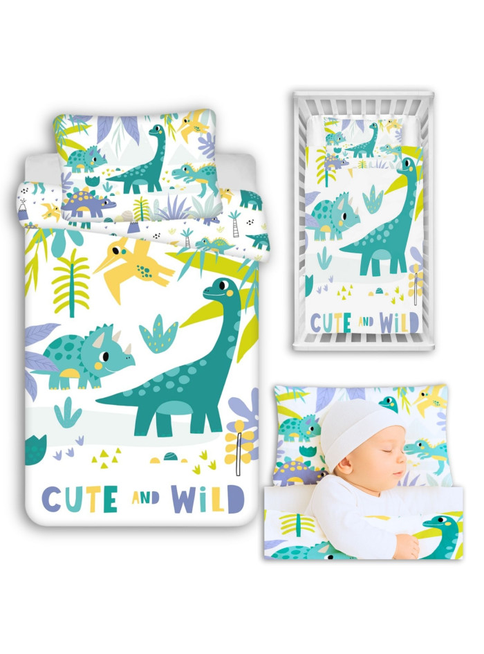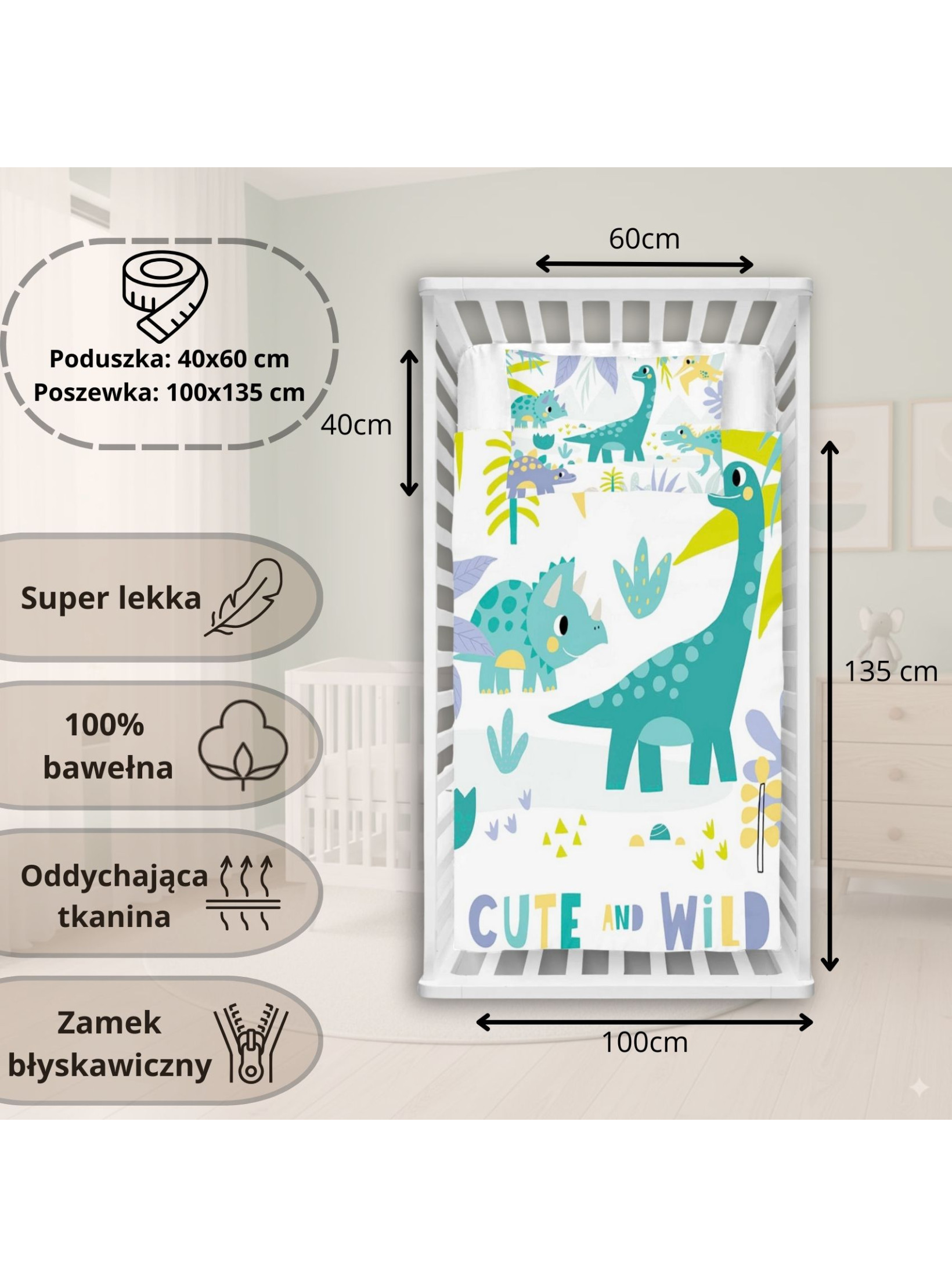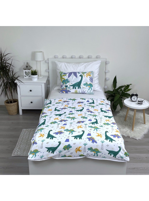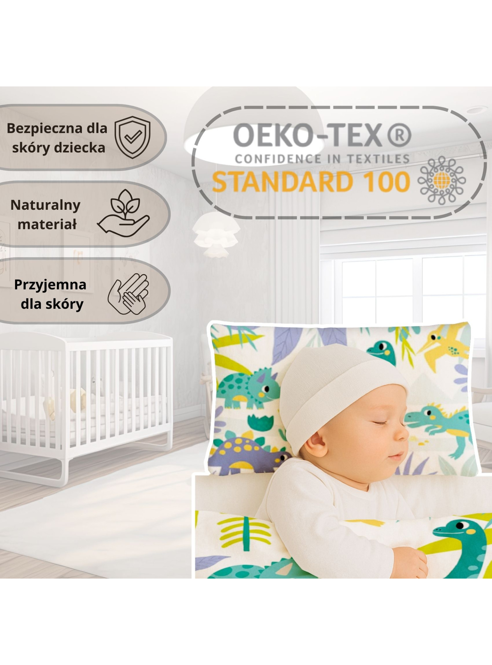 KOMPLET POŚCIELI DO ŁÓŻECZKA DZIECIĘCEGO 100X135 CM KOLOROWE DINOZAURY DINO_04