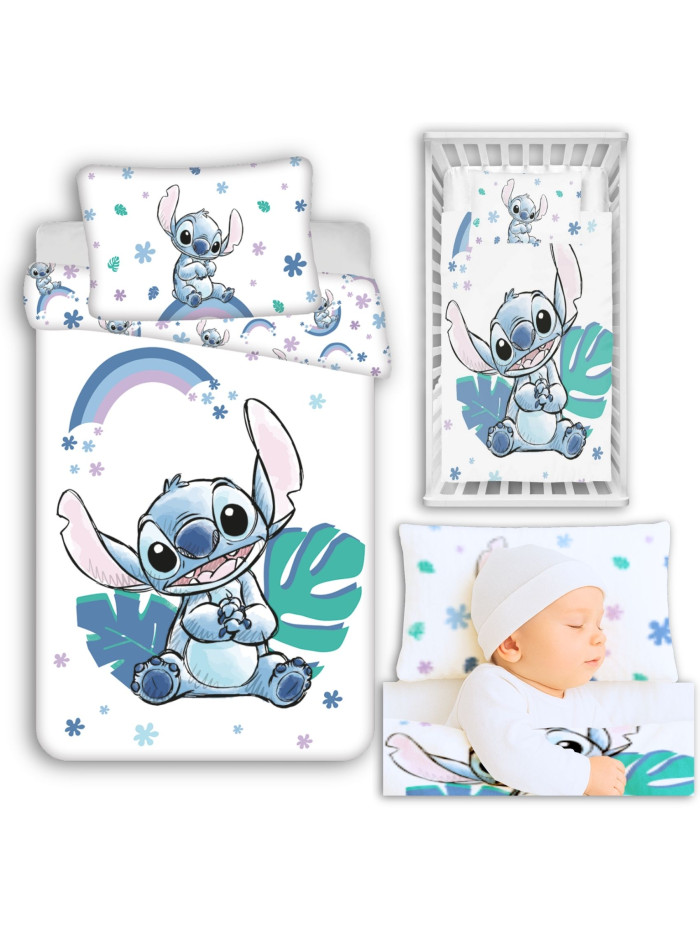 KOMPLET POŚCIELI DO ŁÓŻECZKA DZIECIĘCEGO 100X135 CM LILO I STITCH TĘCZA