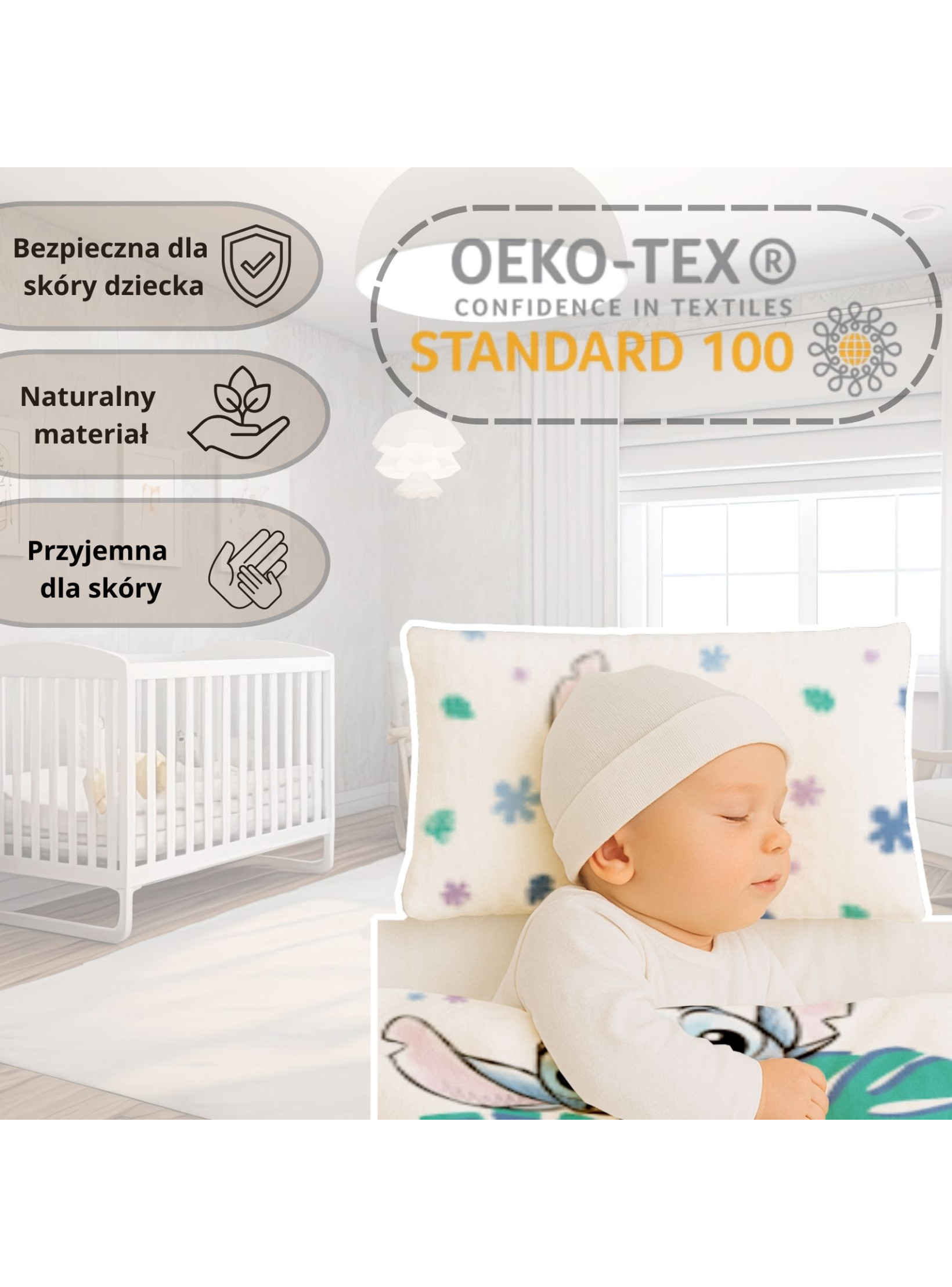 Każdy rodzic pragnie, aby jego maluszek spał spokojnie i bezpiecznie. Nasza pościel dziecięca 100x135 została uszyta z 100% bawełny, która jest miękka, oddychająca i w pełni naturalna. Certyfikat Oeko-Tex Standard 100 potwierdza, że tkanina jest wolna od szkodliwych substancji, dlatego to idealna pościel dla dziecka w jego pierwszych latach życia.
