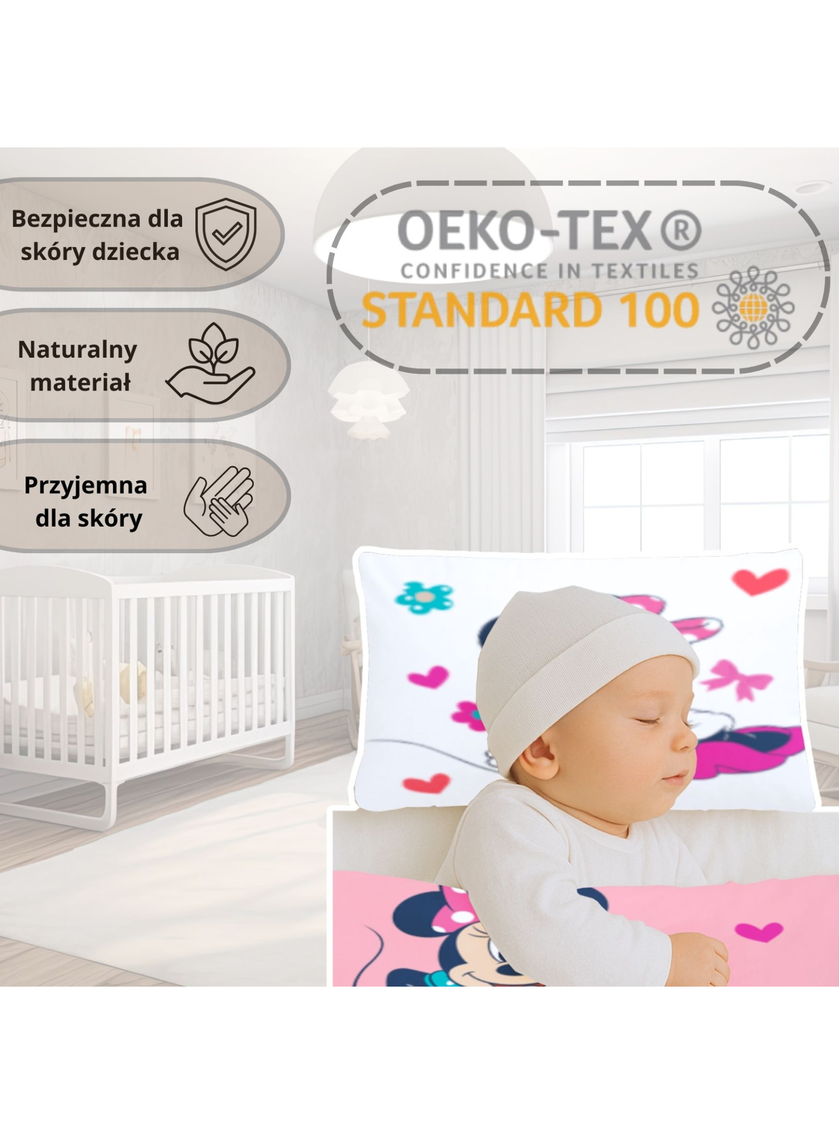 Każdy rodzic pragnie, aby jego maluszek spał spokojnie i bezpiecznie. Nasza pościel dziecięca 100x135 została uszyta z 100% bawełny, która jest miękka, oddychająca i w pełni naturalna. Certyfikat Oeko-Tex Standard 100 potwierdza, że tkanina jest wolna od szkodliwych substancji, dlatego to idealna pościel dla dziecka w jego pierwszych latach życia.