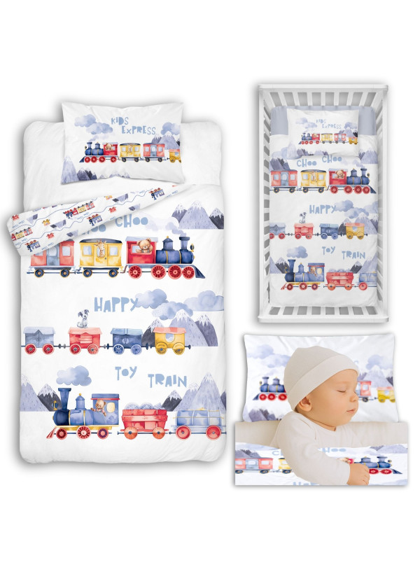 POŚCIEL DO ŁÓŻECZKA 90x120 POCIĄG LOKOMOTYWA 5507_A