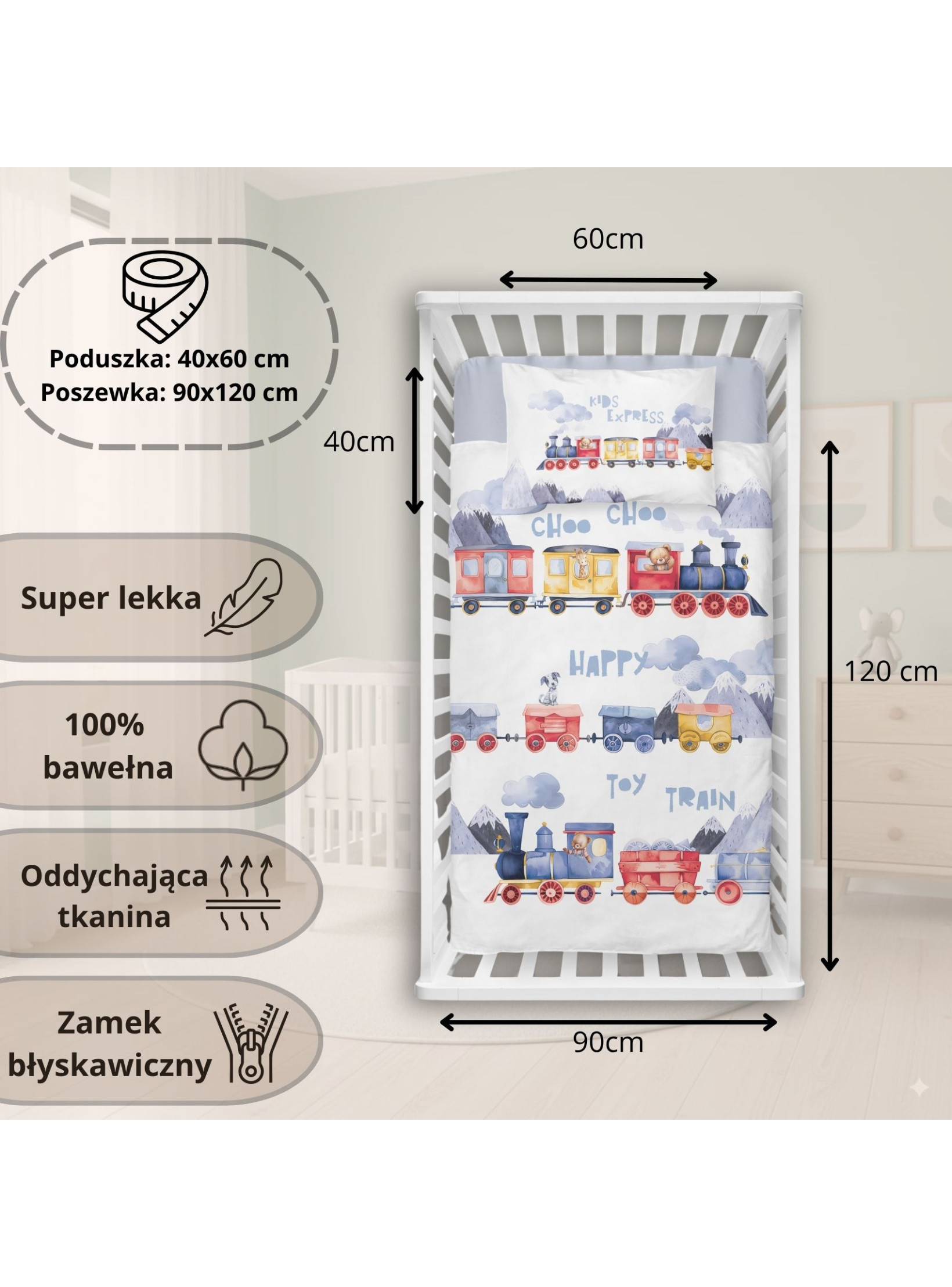 POŚCIEL DO ŁÓŻECZKA 90x120 POCIĄG LOKOMOTYWA 5507_A - KOD:2198