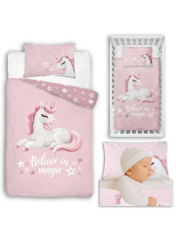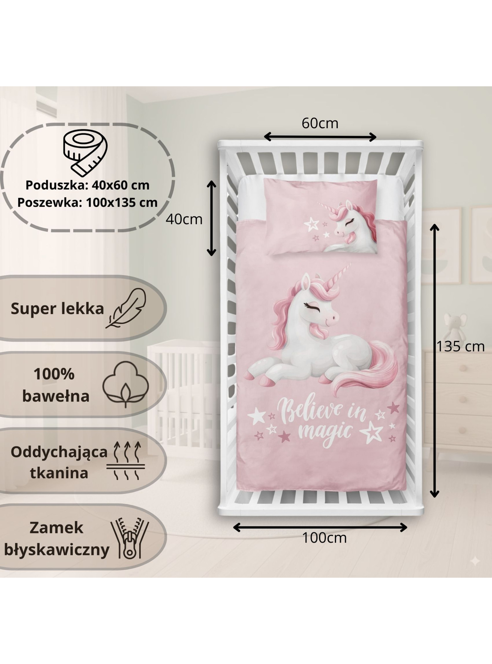 POŚCIEL DO ŁÓŻECZKA 100x135 JEDNOROŻEC RÓŻOWA 5517_B - KOD:2211