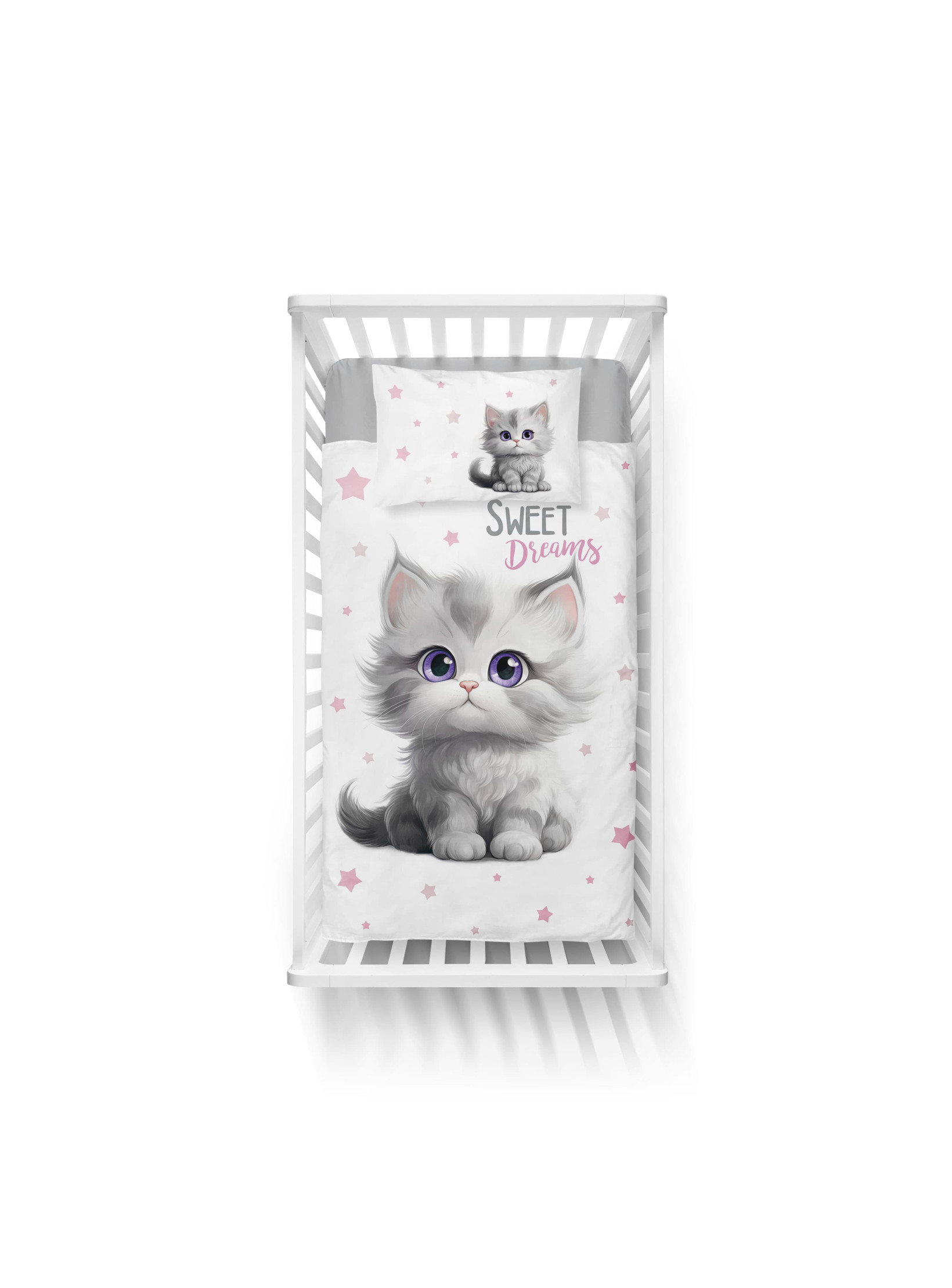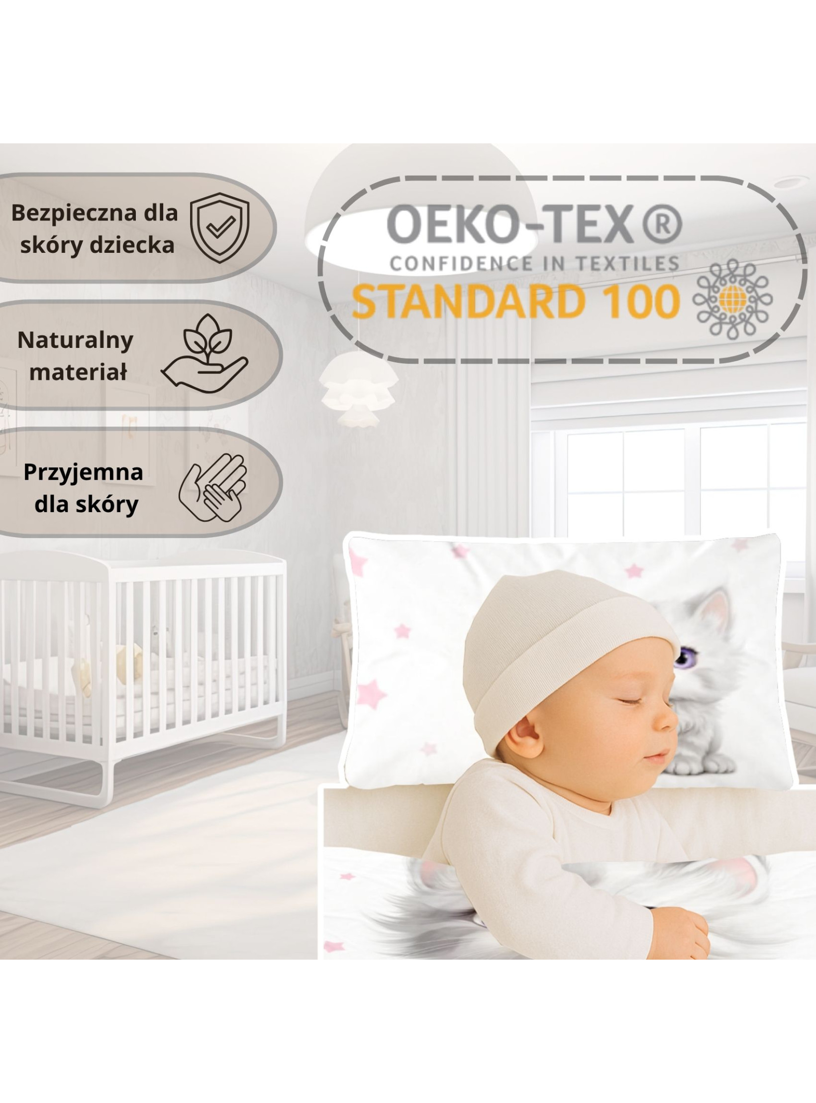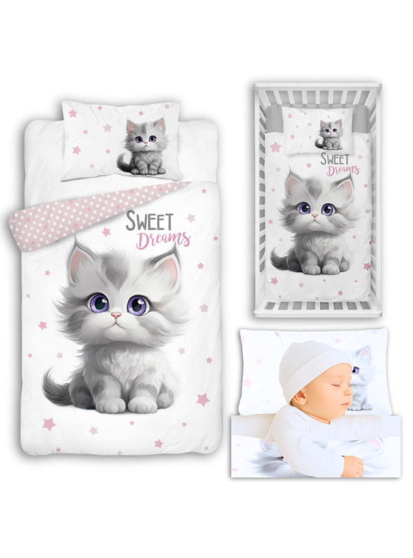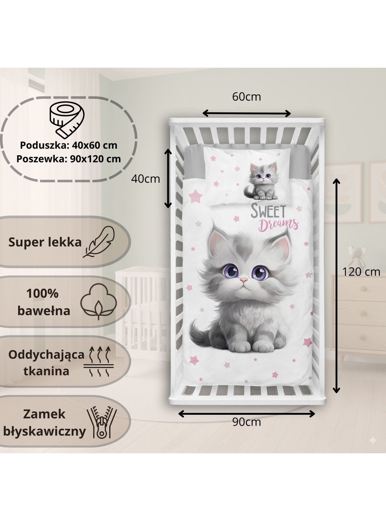 POŚCIEL DO ŁÓŻECZKA 90x120 KOT KOTEK RÓŻOWA 5518_B