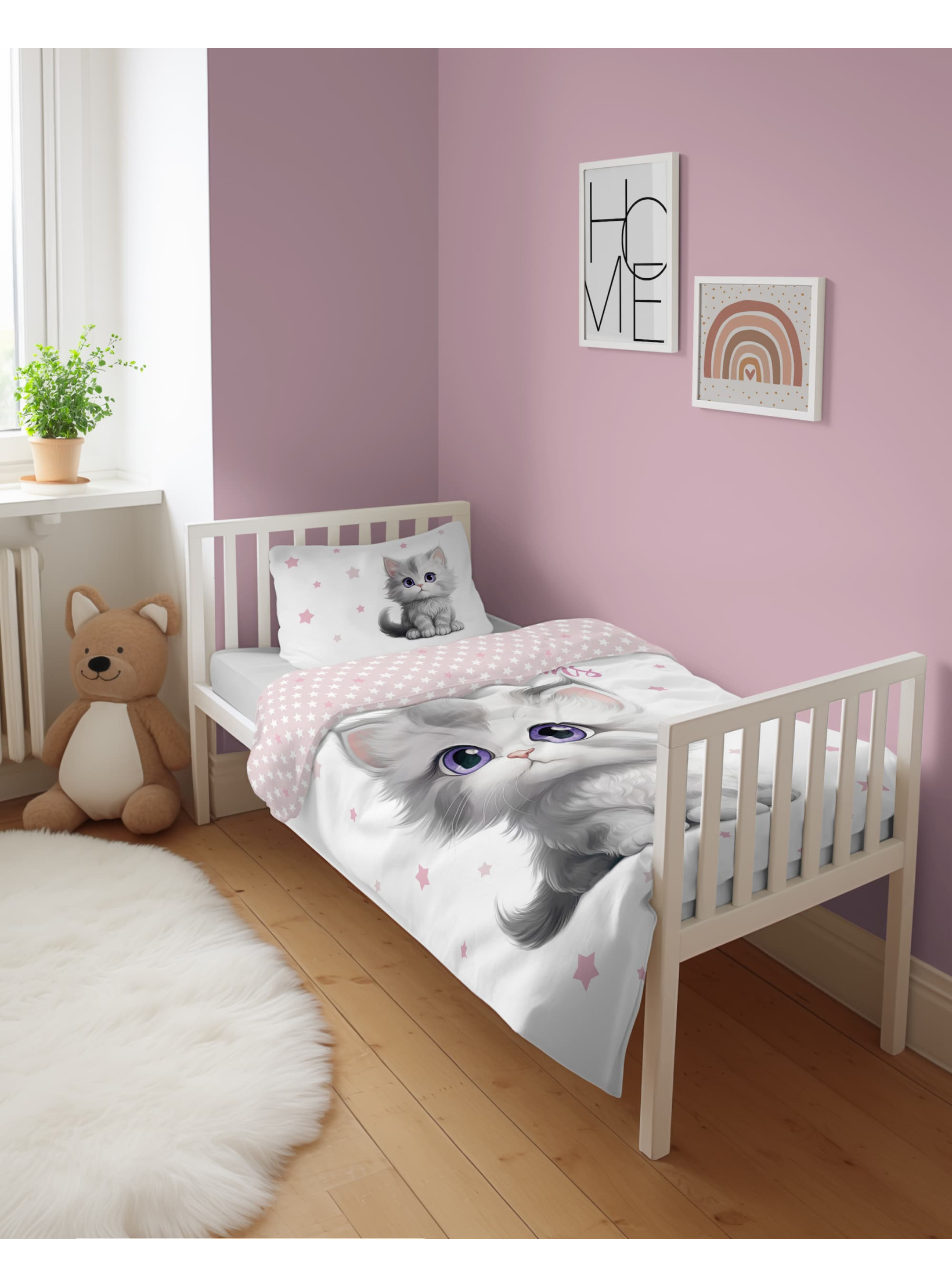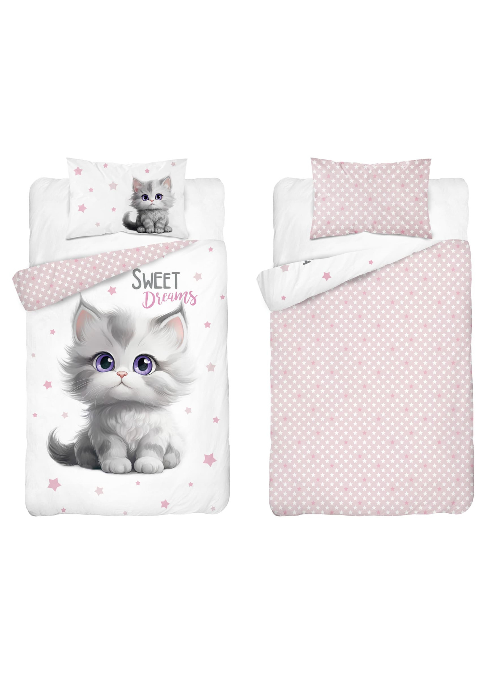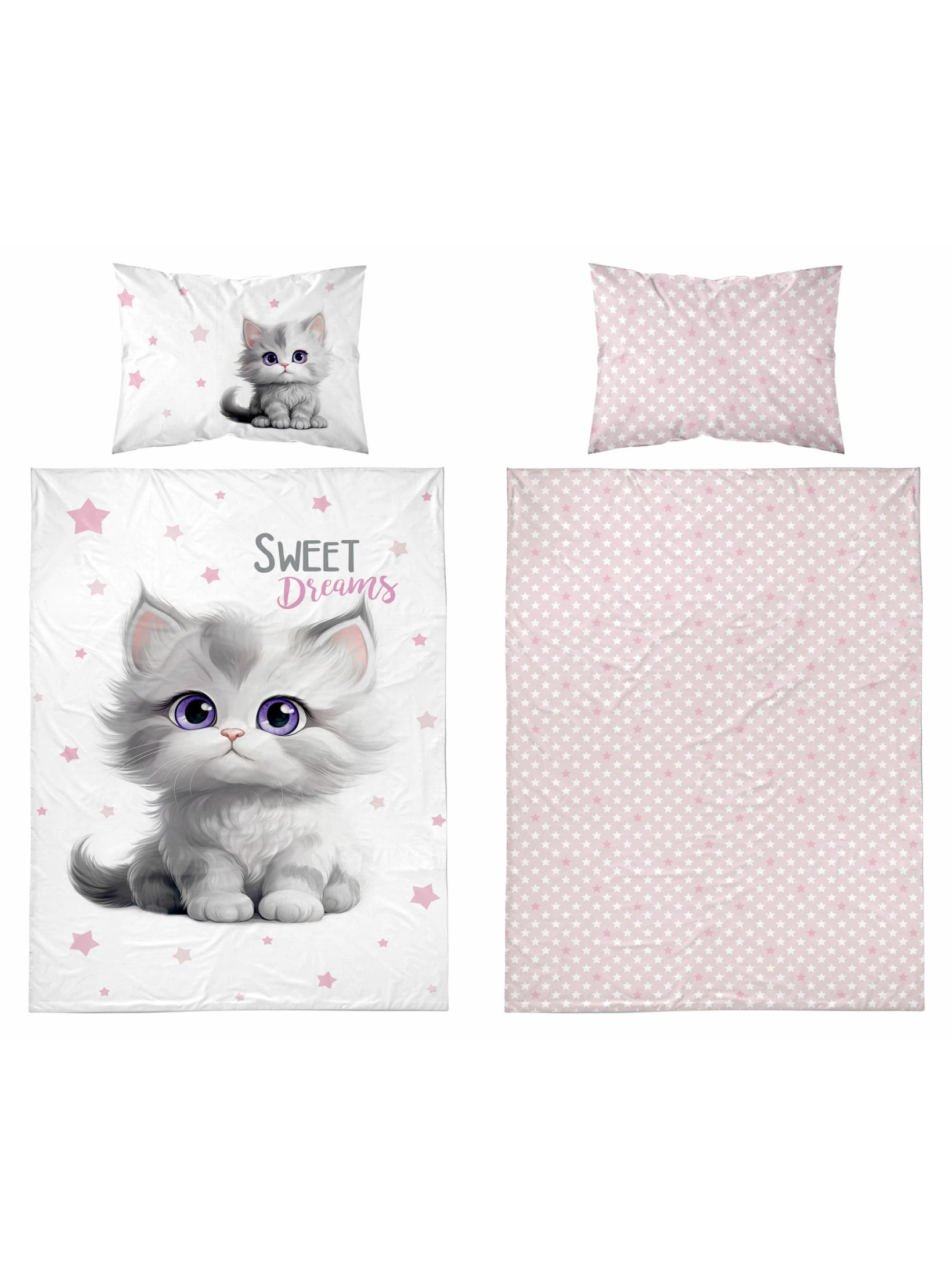 POŚCIEL DO ŁÓŻECZKA 90x120 KOT KOTEK RÓŻOWA 5518_B