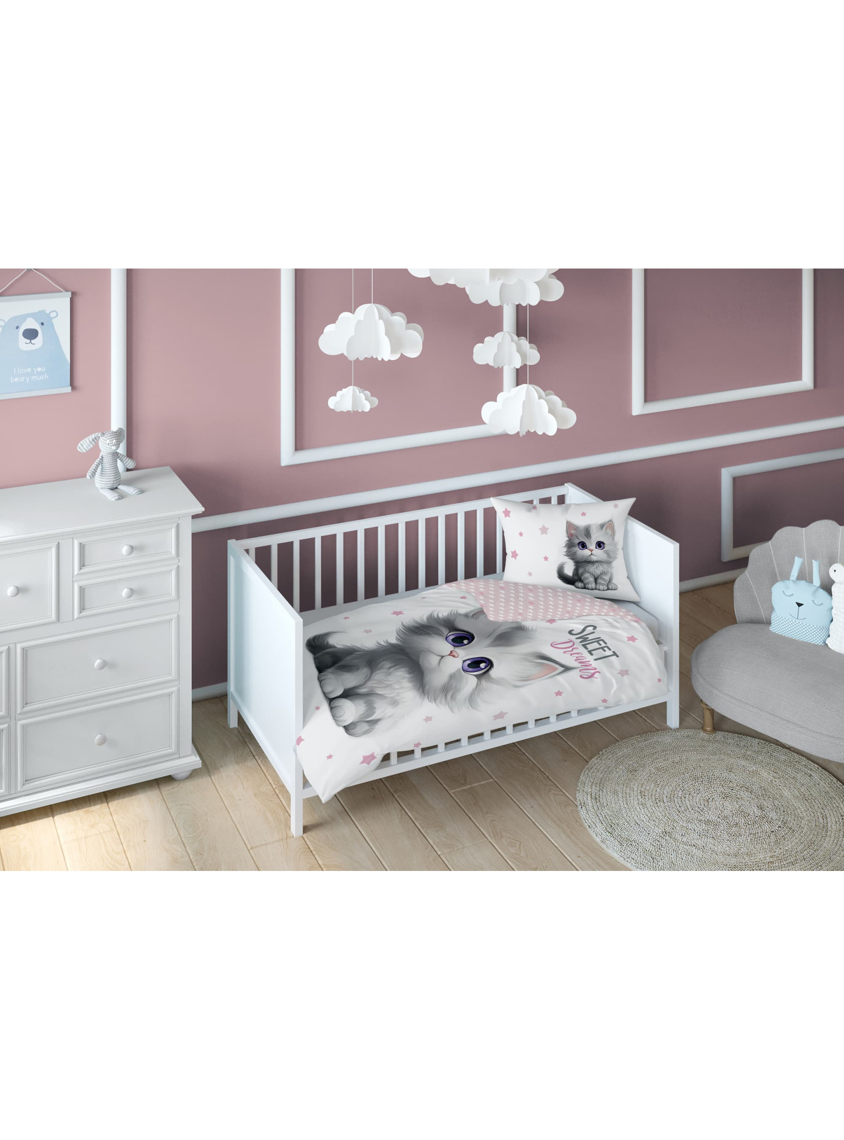POŚCIEL DO ŁÓŻECZKA 90x120 KOT KOTEK RÓŻOWA 5518_B - KOD:2215