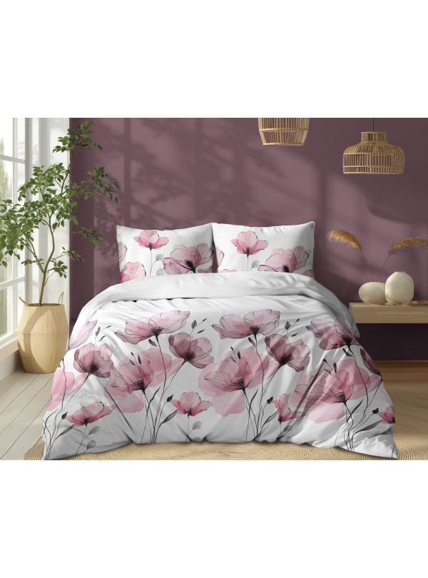 POŚCIEL BAWEŁNIANA 160x200 W RÓŻOWE KWIATY 5496_B - KOD:2243