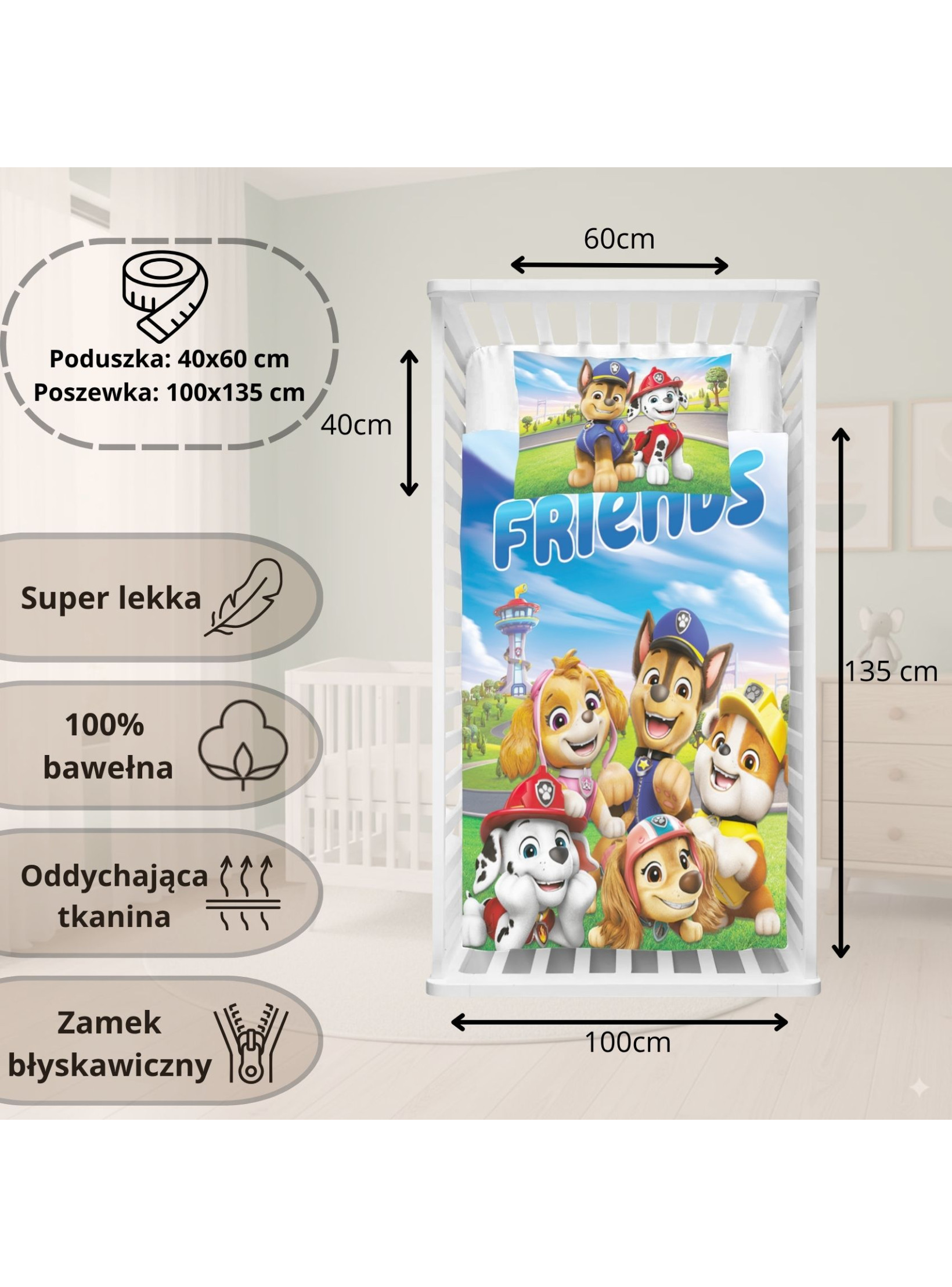KOMPLET POŚCIELI DO ŁÓŻECZKA DZIECIĘCEGO 100X135 CM PSI PATROL PP553