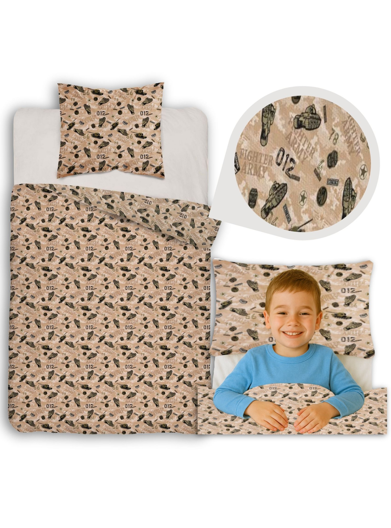 POŚCIEL MŁODZIEŻOWA 140x200 Z CZOŁGIEM MORO 5872_A