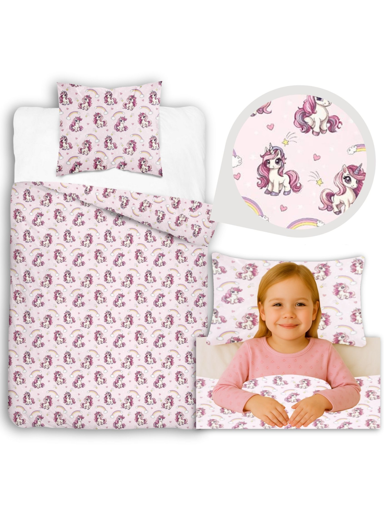 POŚCIEL MŁODZIEŻOWA 140x200 RÓŻOWA Z JEDNOROŻCEM 5873_A