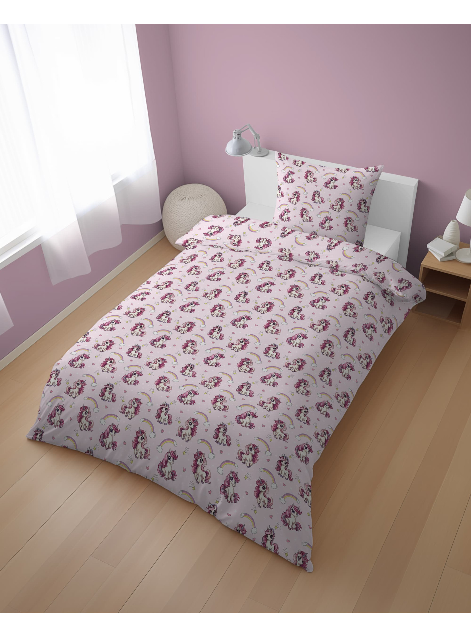 POŚCIEL MŁODZIEŻOWA 160x200 RÓŻOWA Z JEDNOROŻCEM 5873_A