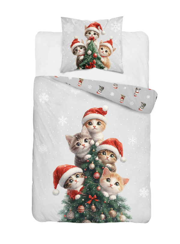 POŚCIEL ŚWIĄTECZNA 160x200 KOTKI CHOINKA 5867_A - KOD:2311