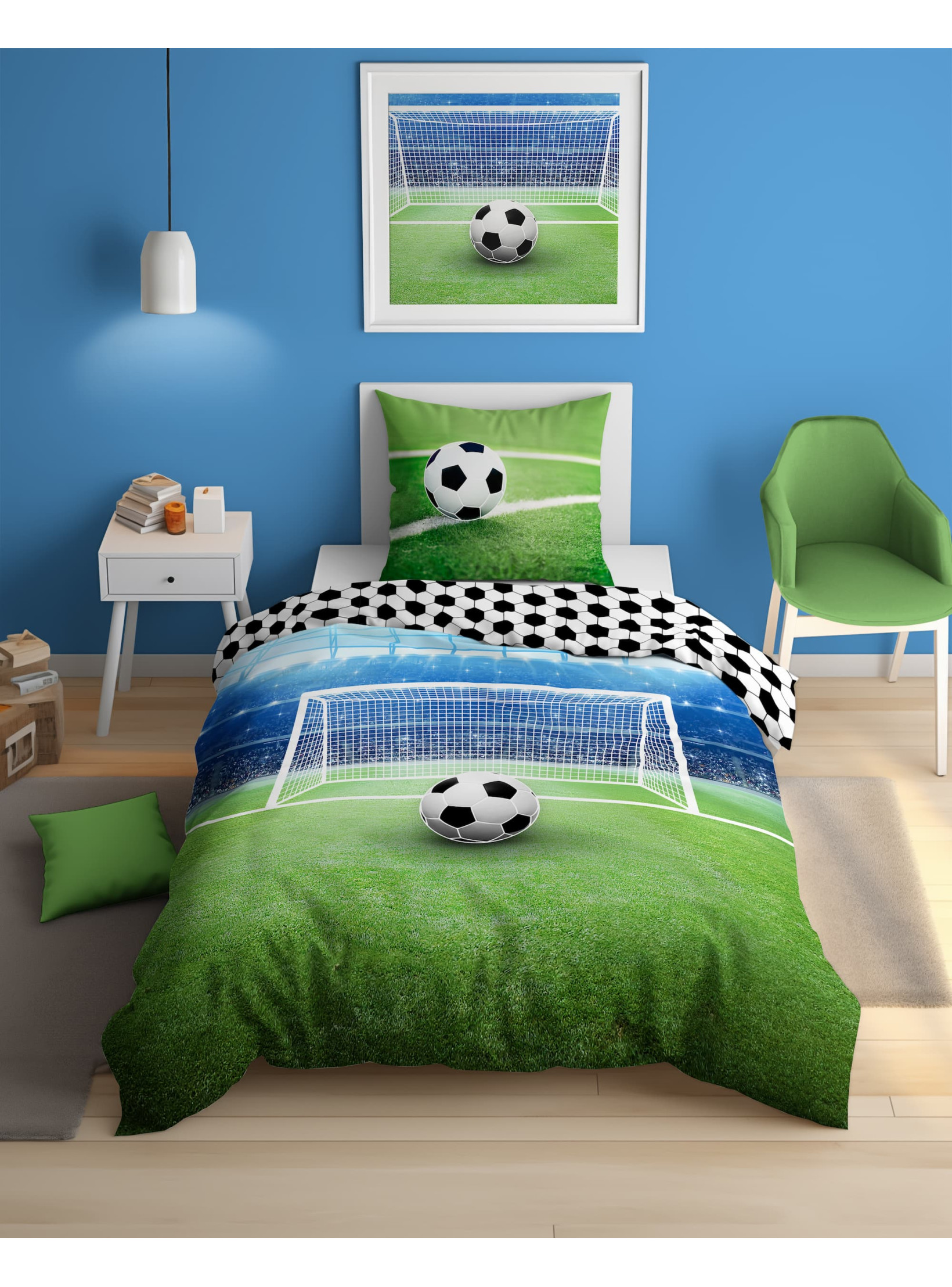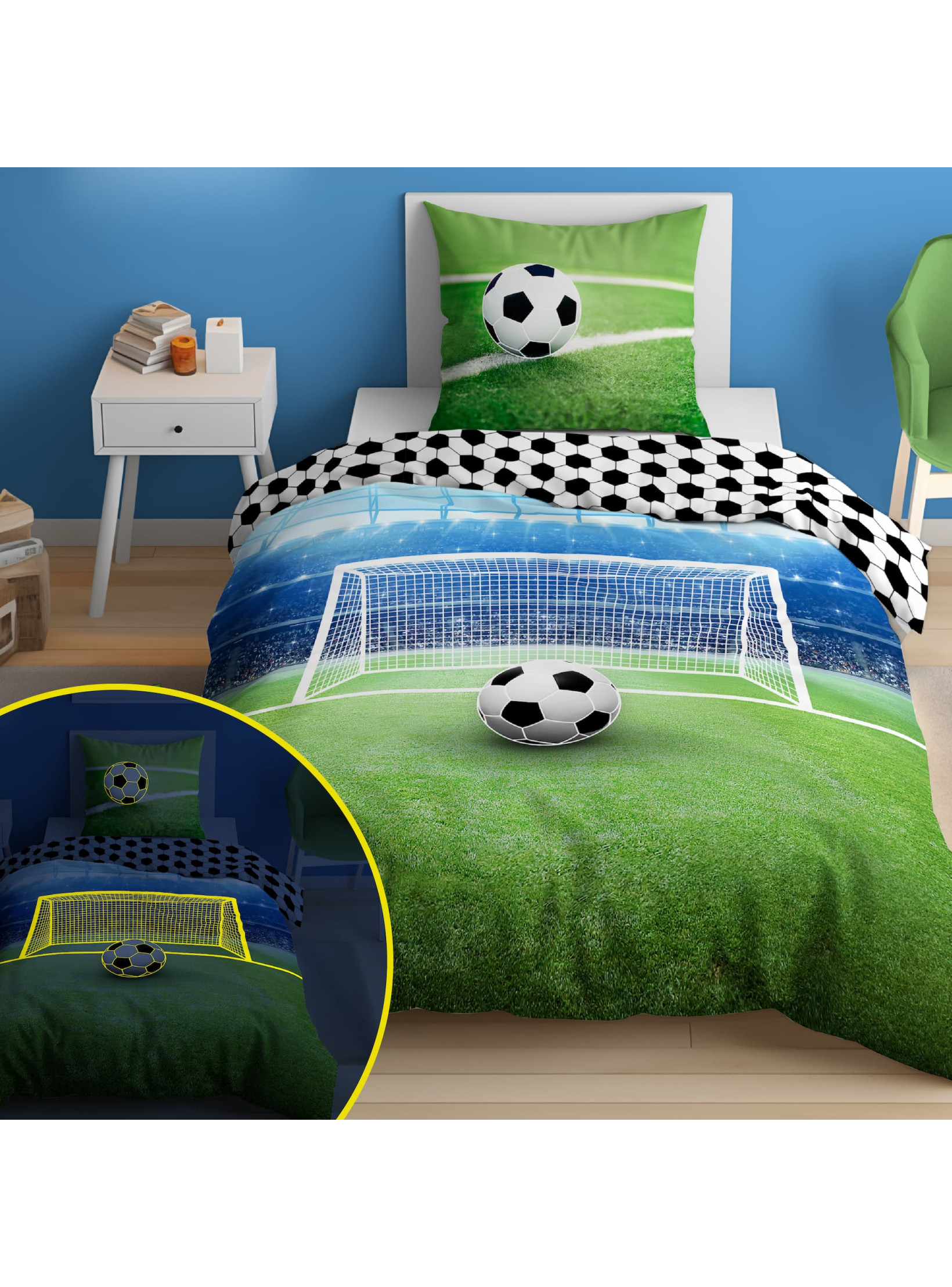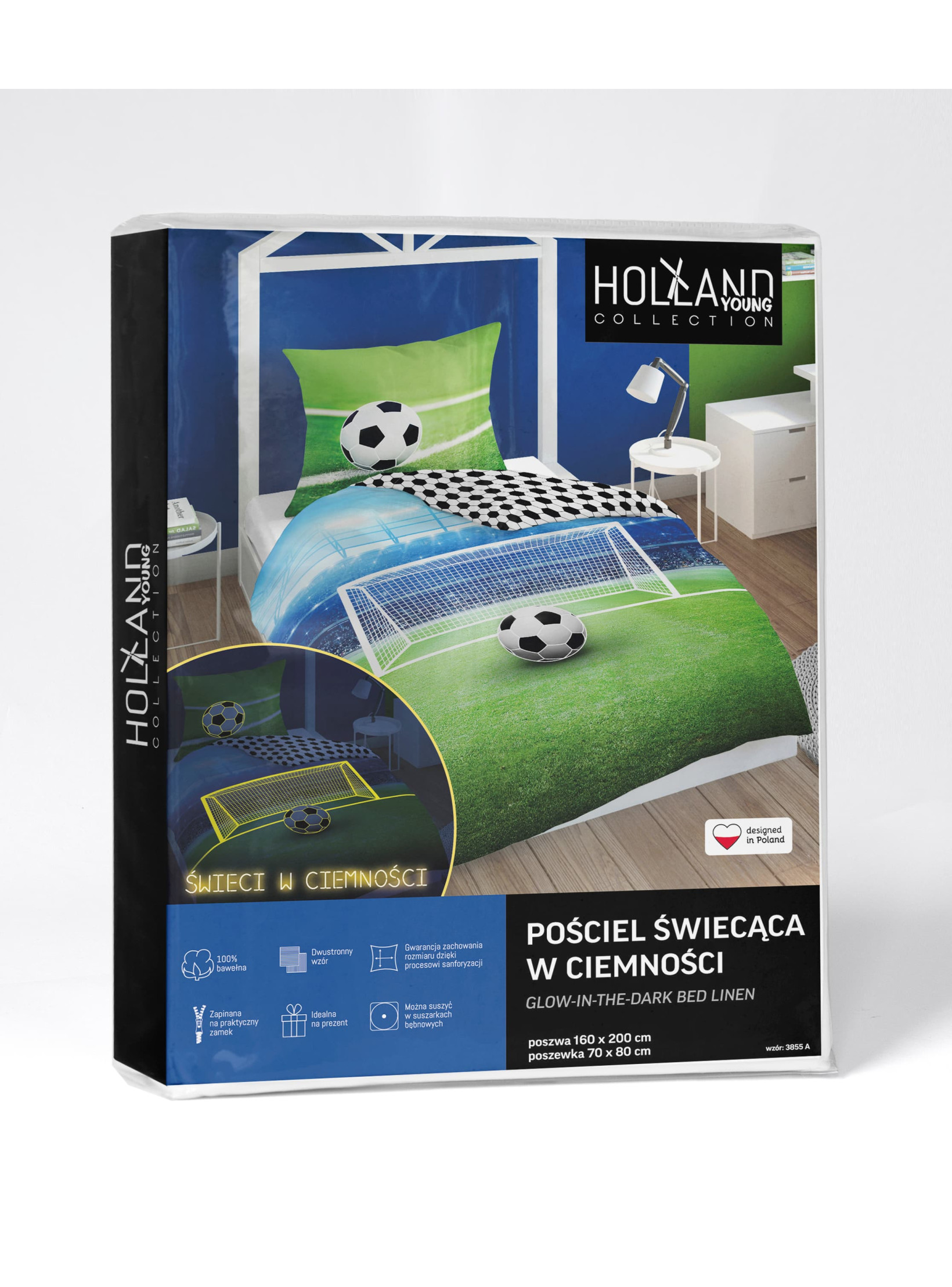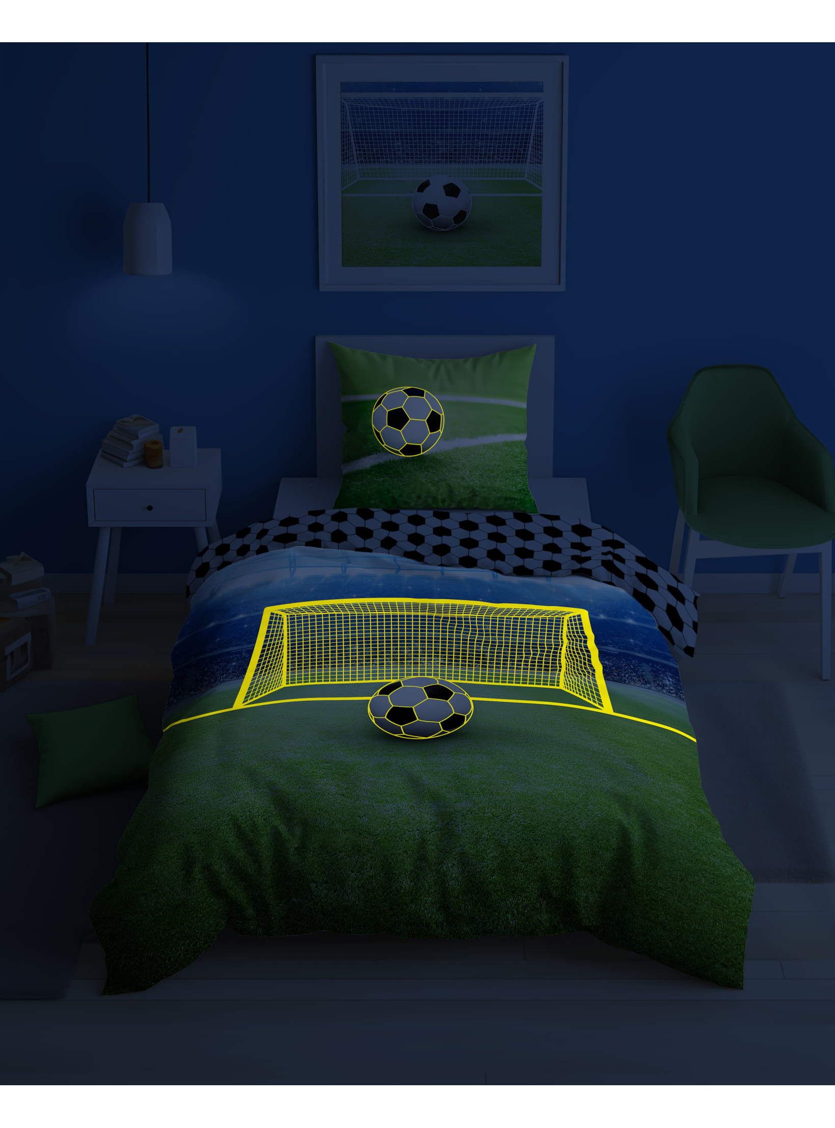 POŚCIEL 160x200 ŚWIECĄCA W CIEMNOŚCI PIŁKA NOŻNA 3855_A