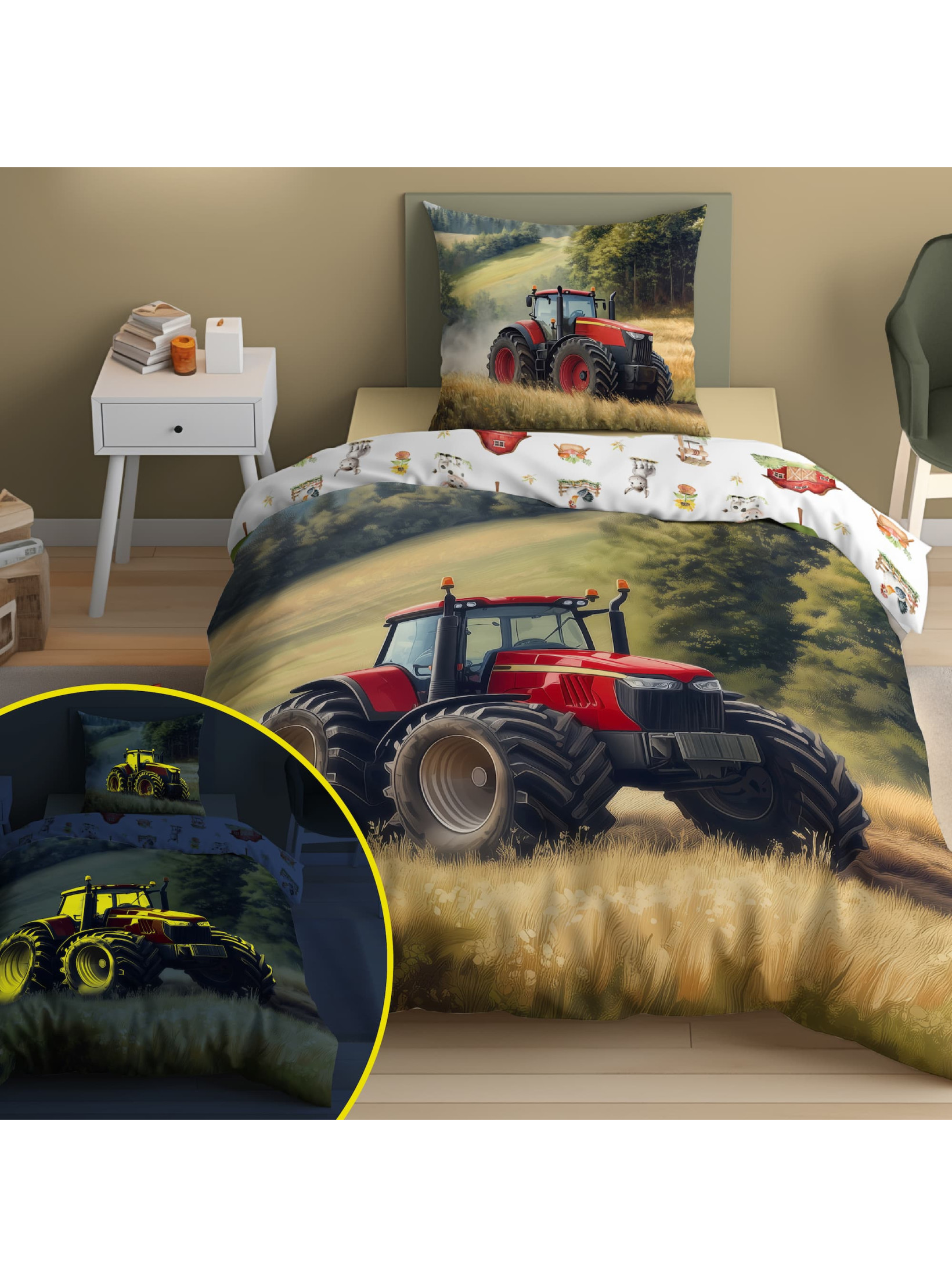 POŚCIEL 160x200 ŚWIECĄCA W CIEMNOŚCI CZERWONY TRAKTOR 5731A - KOD:2325