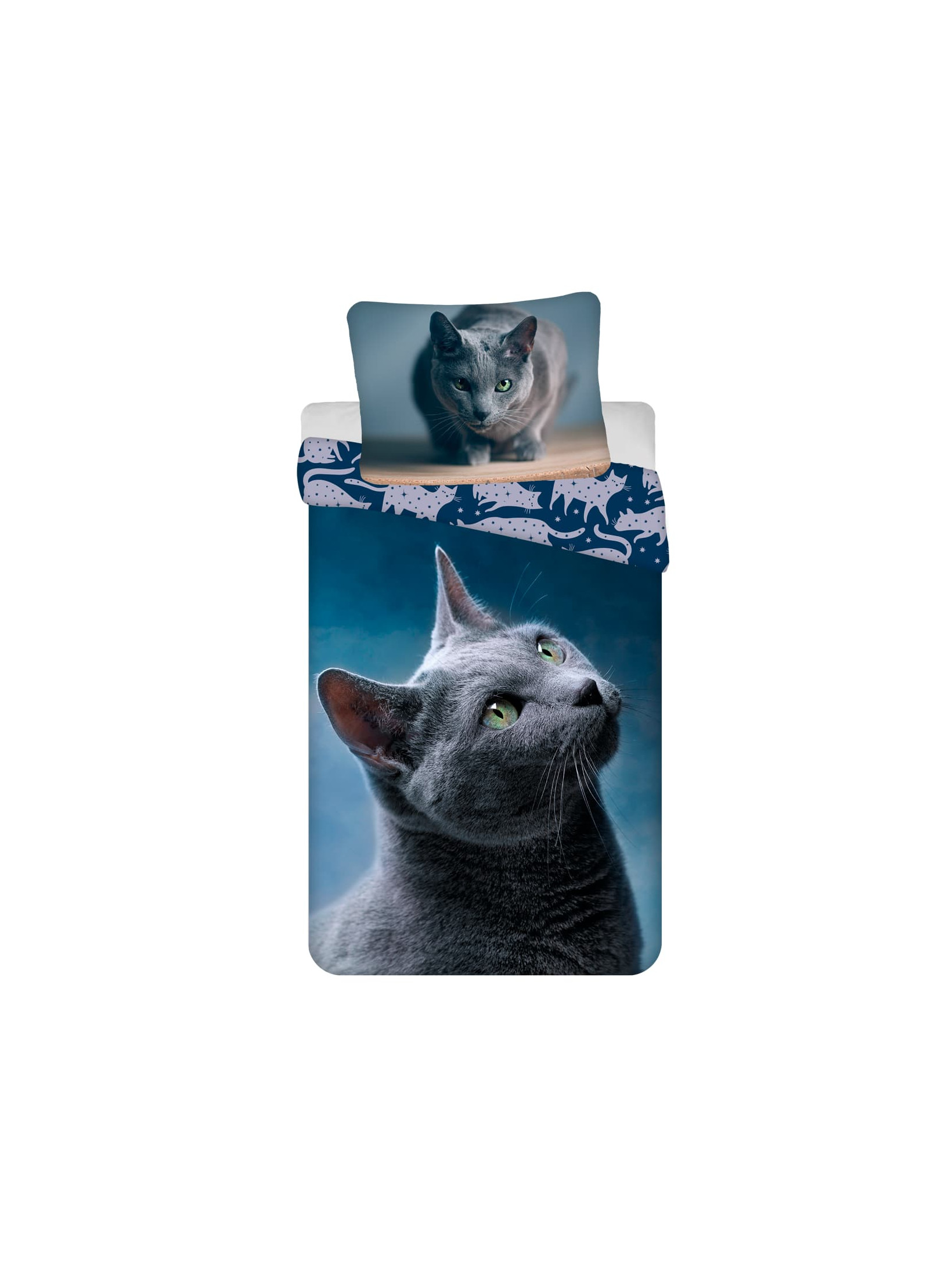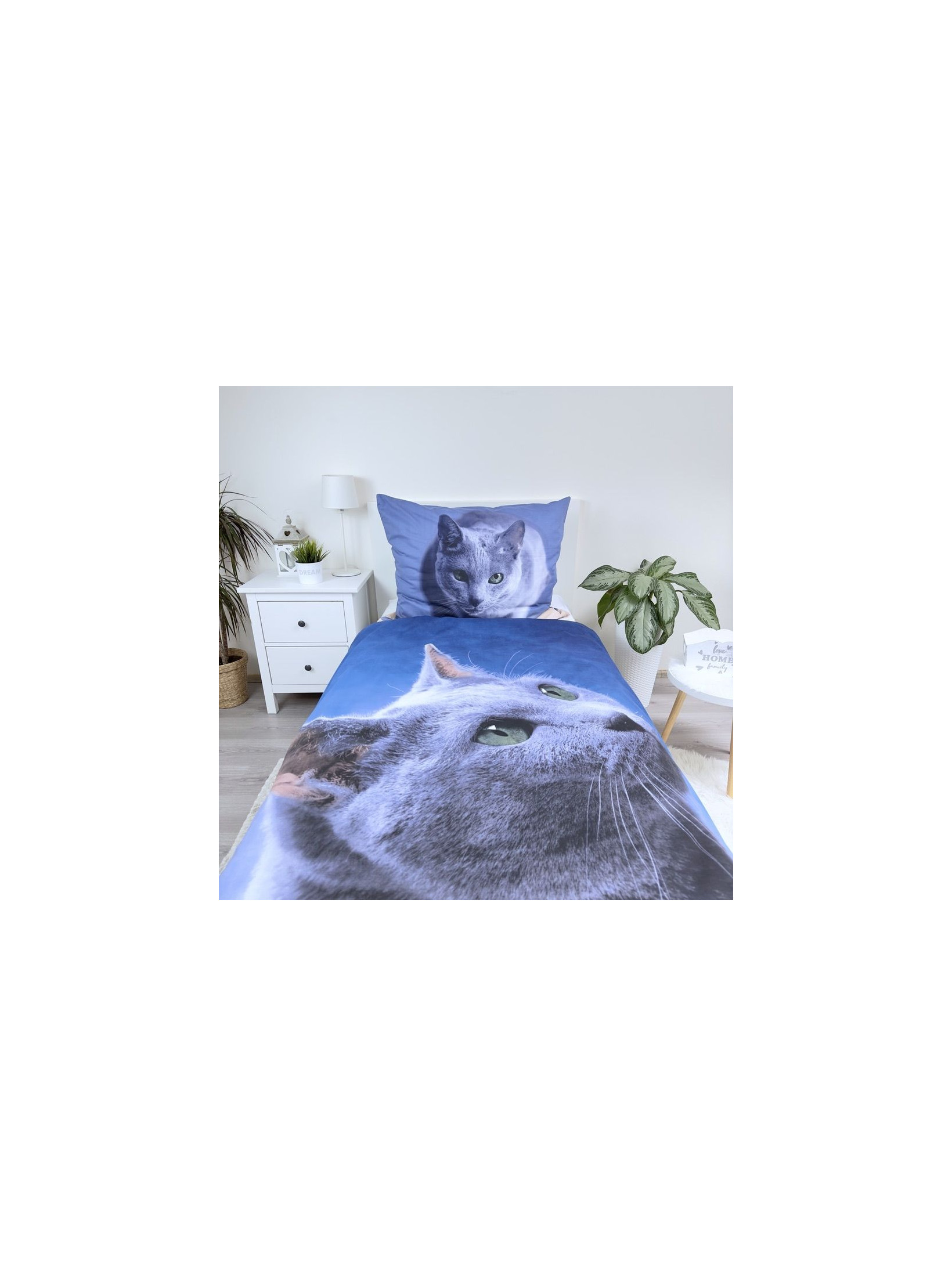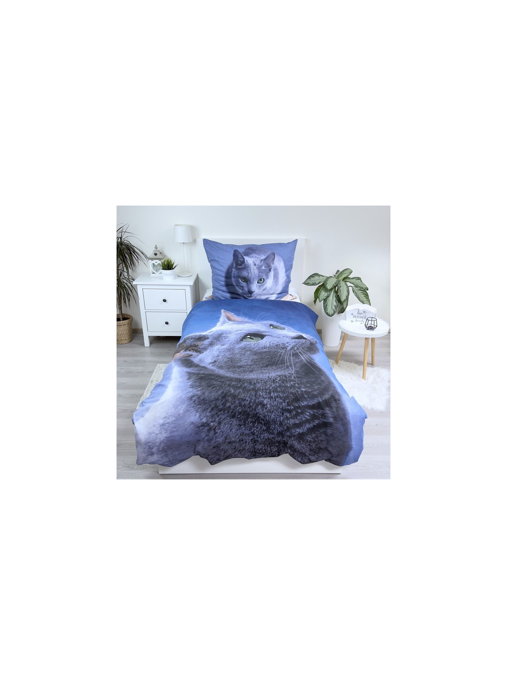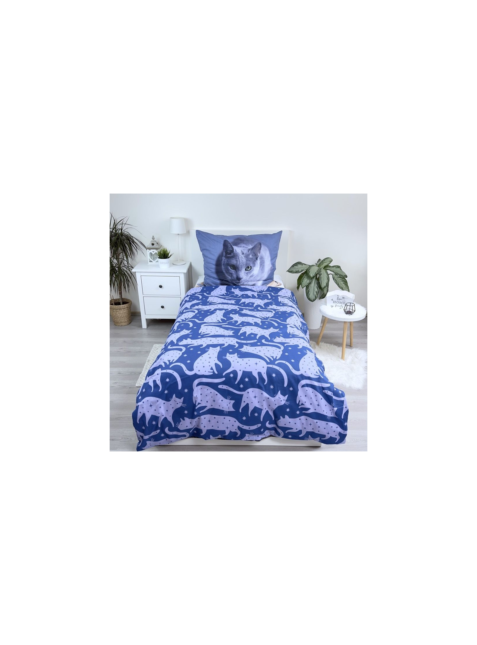 POŚCIEL BAWEŁNIANA 140x200 CM CZARNY KOT - KOD:2353