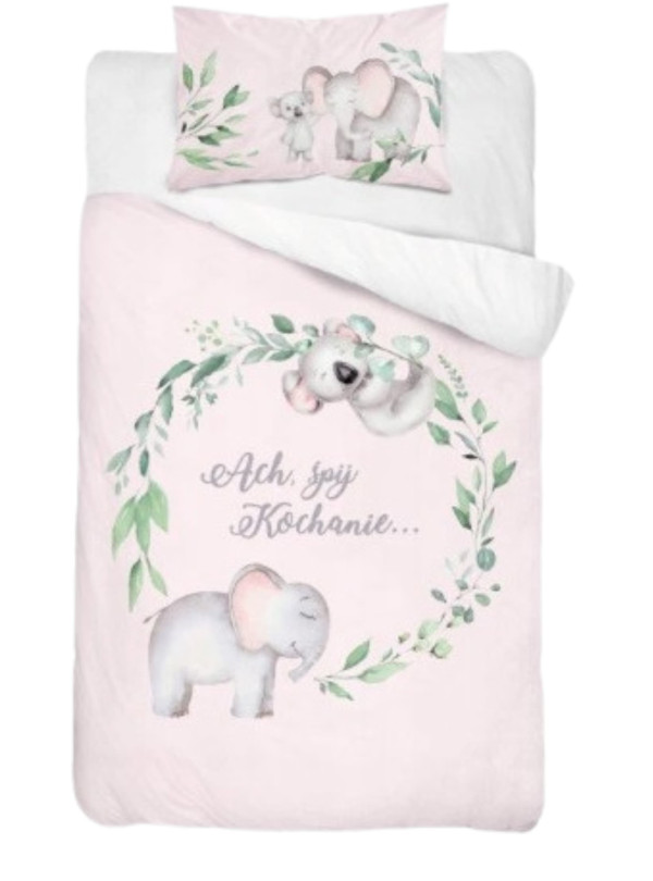 POŚCIEL DO ŁÓŻECZKA 100x135 DLA DZIECI SŁONIK RÓŻOWY - KOD:55